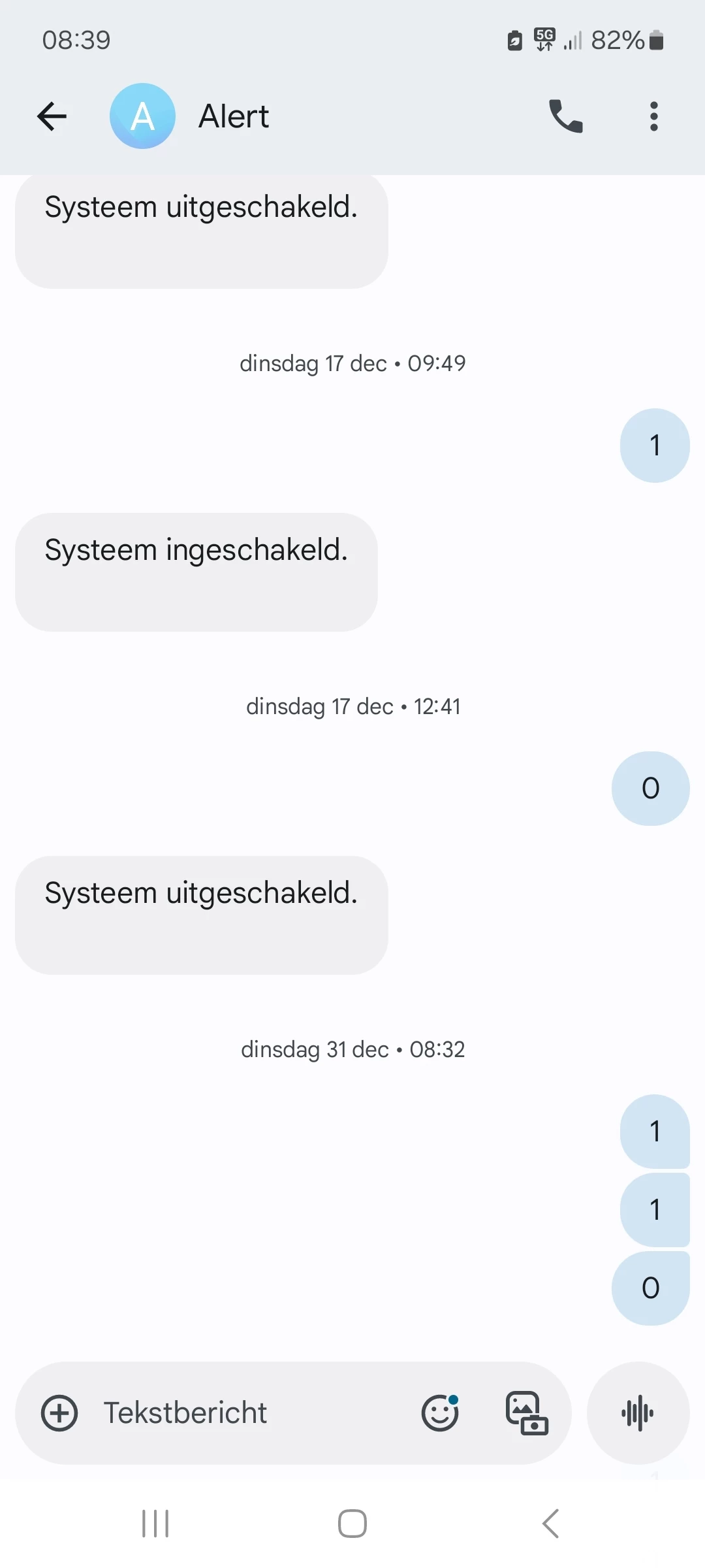 Ze stuurden ook SMS, maar aangezien dat de simkaart in jouw alarmsysteem zat, kan je de SMS nooit lezen.