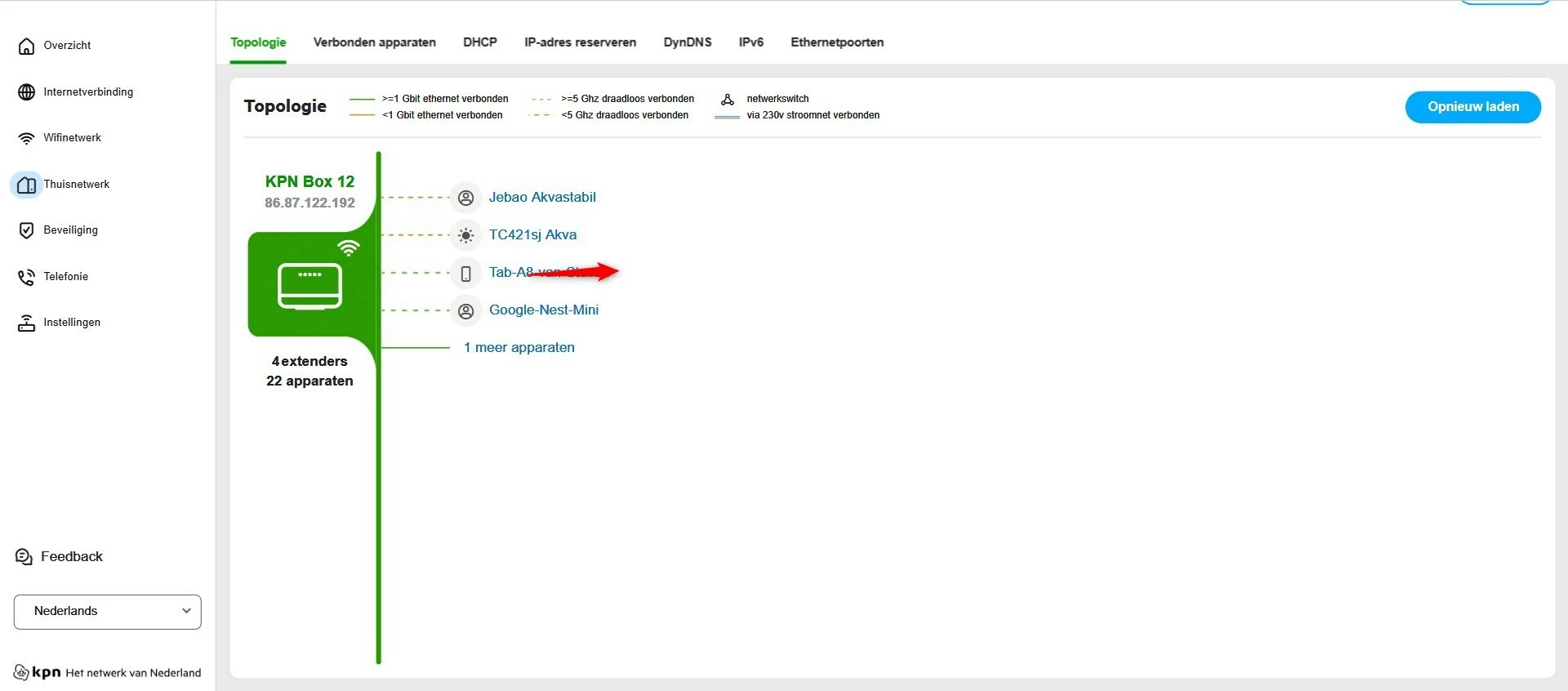 Maar als jij verdere problemen ervaart met de topologie en de verbonden apparaten, dan raak ik je een herstart aan van je modem. En voor de zekerheid ook het verwijderen van cookies en legen van de cache in je browser(s).