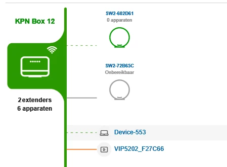 Die onbereikbaar klopt, maar op de bovenste zijn meerdere aparaten aangesloten.