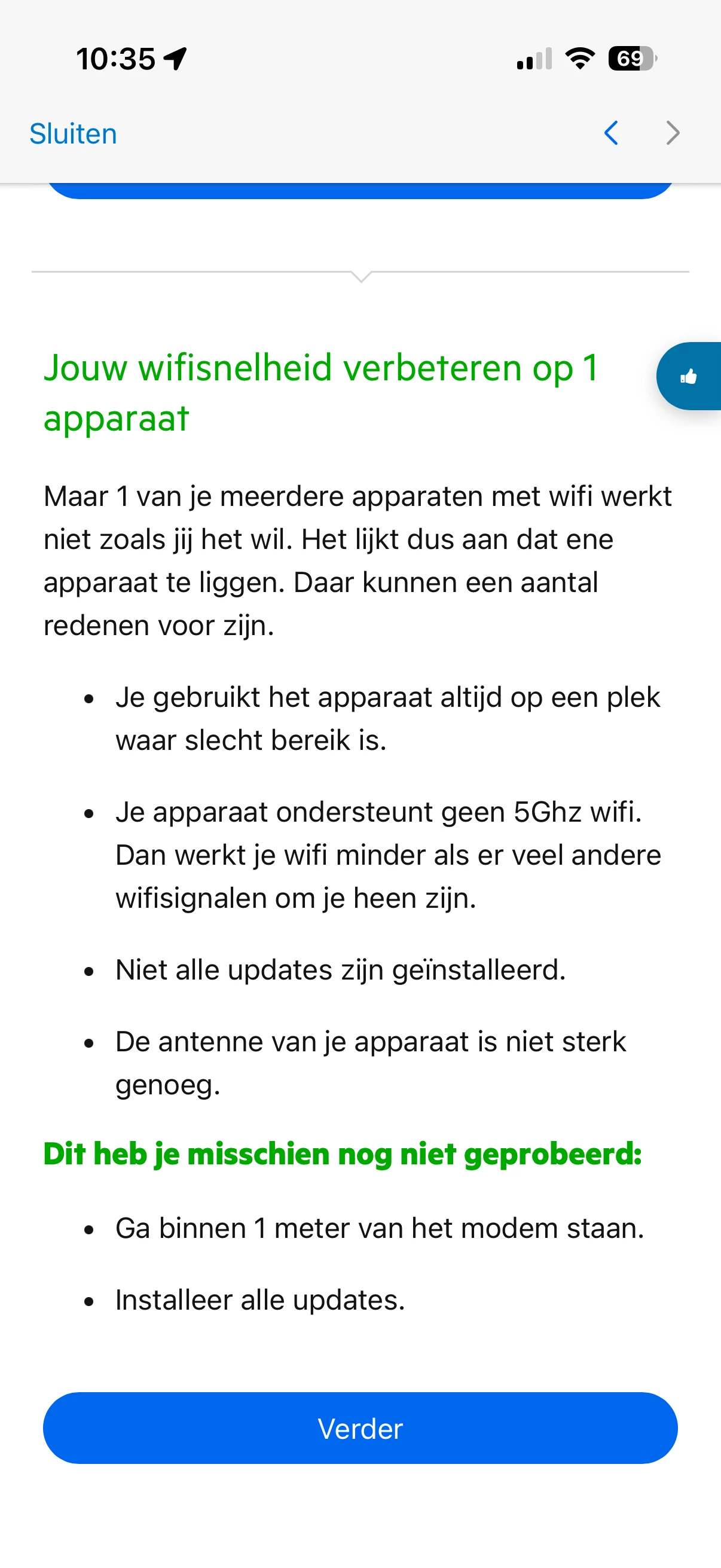 Ik zie dat hele scherm niet. Na de keuze WiFi verbeteren kom ik in de WiFi-manager en die geeft uiteindelijk aan dat ik in mijn hele huis goede WiFi heb.