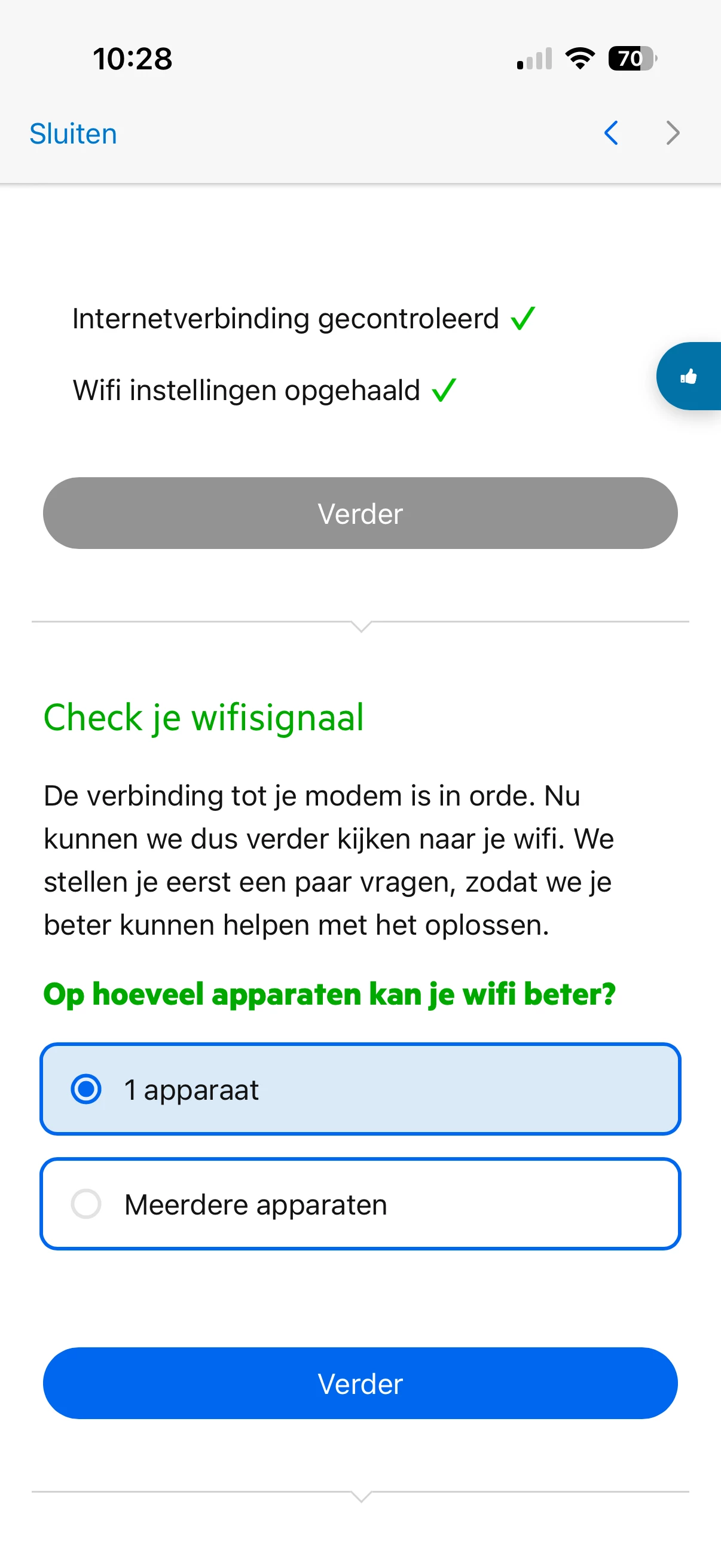 als alles is doorlopen en je wilt aangeven of het 1 apparaat of meerdere apparaten betreft, selecteer ik meerdere apparaten maar gaat het bolletje alleen aan op 1 apparaat en is de uitkomst dan ook niet als verwacht, want het zou dan aan 1 apparaat liggen.