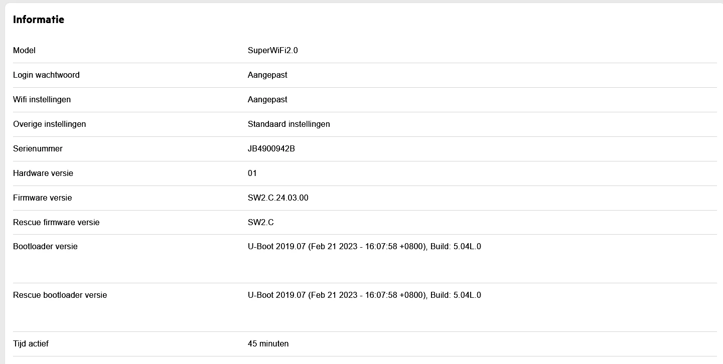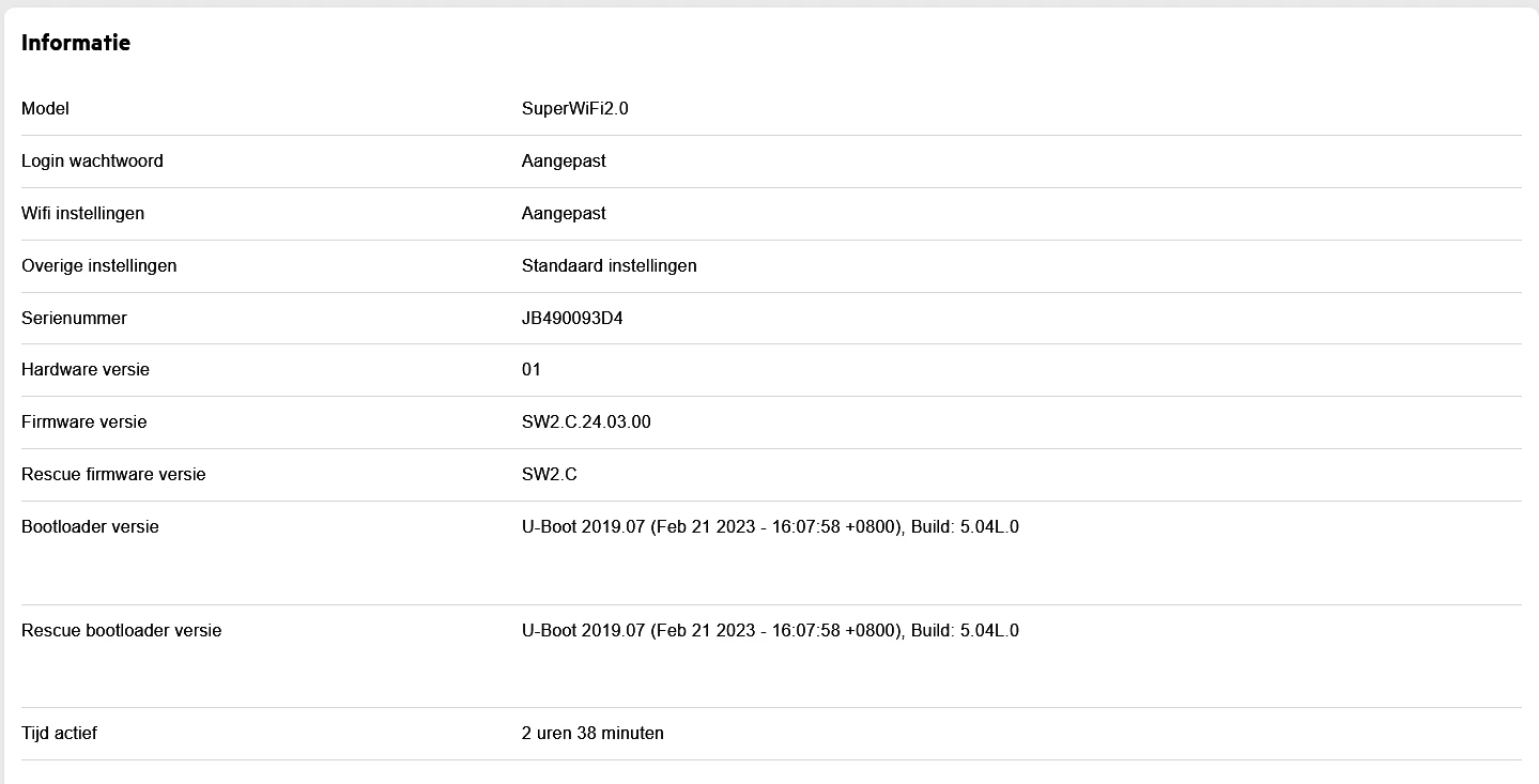 Nogmaals deze stappen doorlopen maar helaas is de update nogsteeds niet uitvoerbaar op de superwifi2 punten. Heb ook terwijl het superwifi2 punt uit stond het apparaat ontkoppelt van de KPN Box via het webportaal om zeker te weten dat deze ‘schoon’-geinstalleerd zou worden.