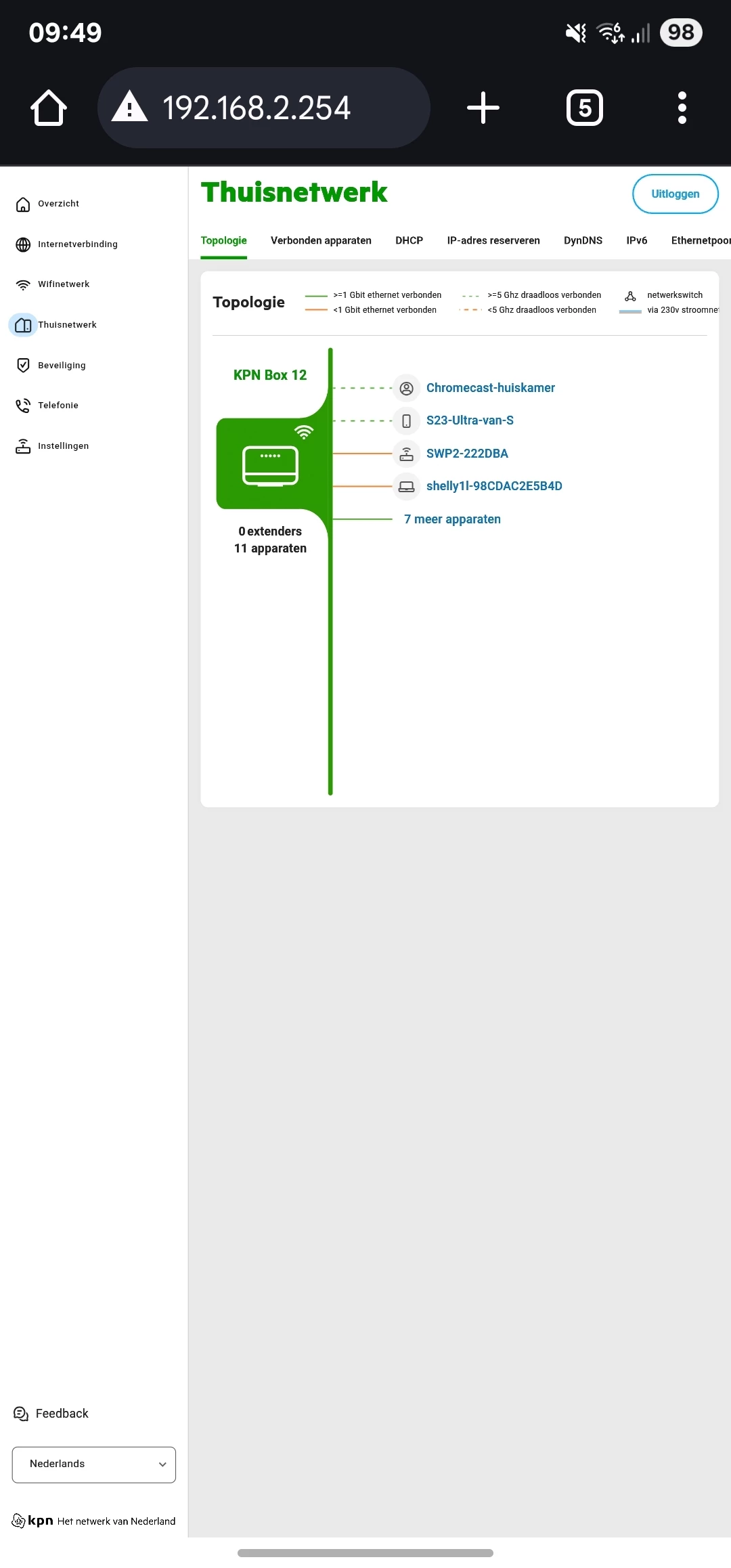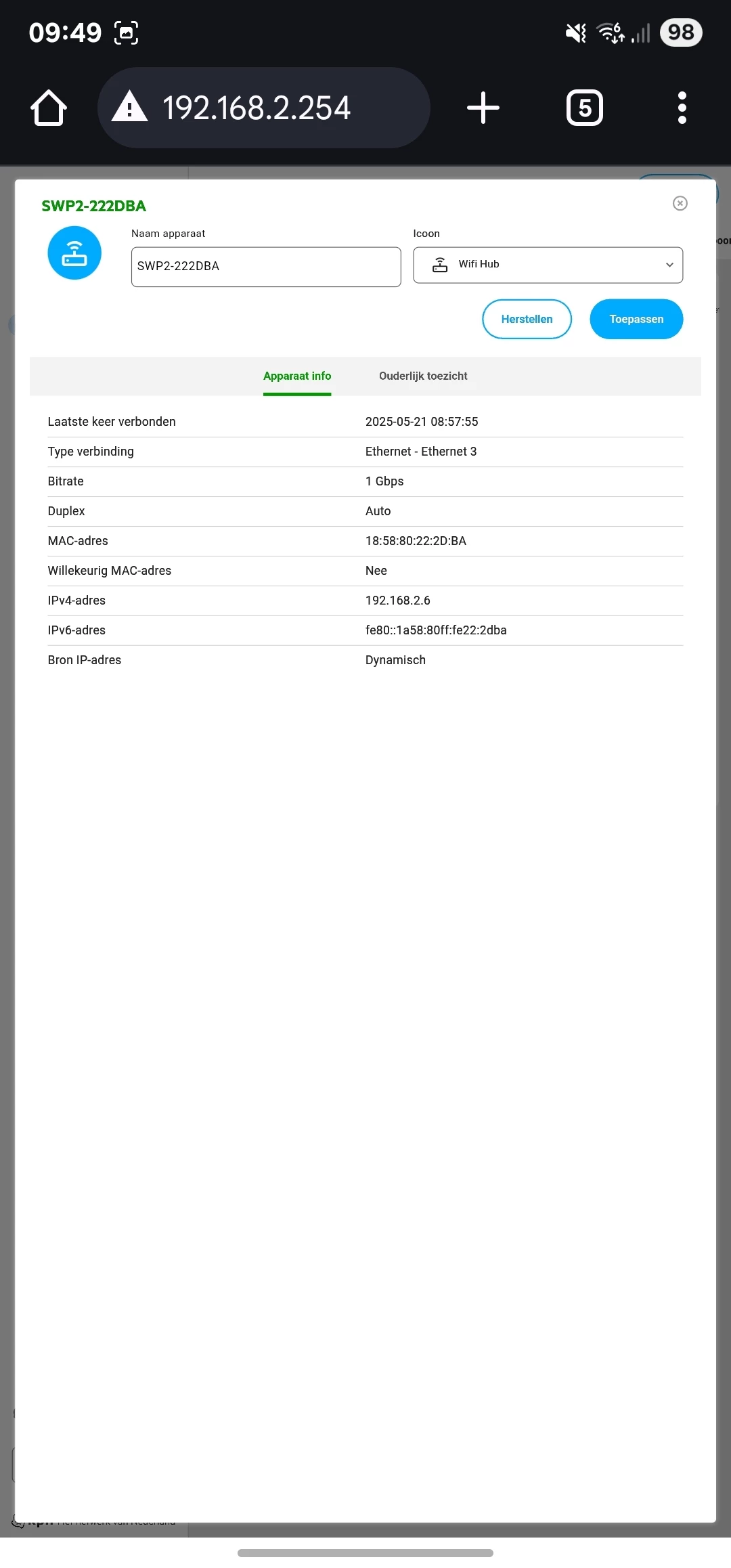 De ip adressen vul ik in op de apparaten. De ip adressen van de Superwifi 2 kan ik niet veranderen.