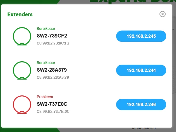 Maar wat mij triggerde hier op het forum is dat er gemeld wordt dat als de leds van de extenders groen zijn dan werken ze, maar dat is dus hier totaal niet het geval.