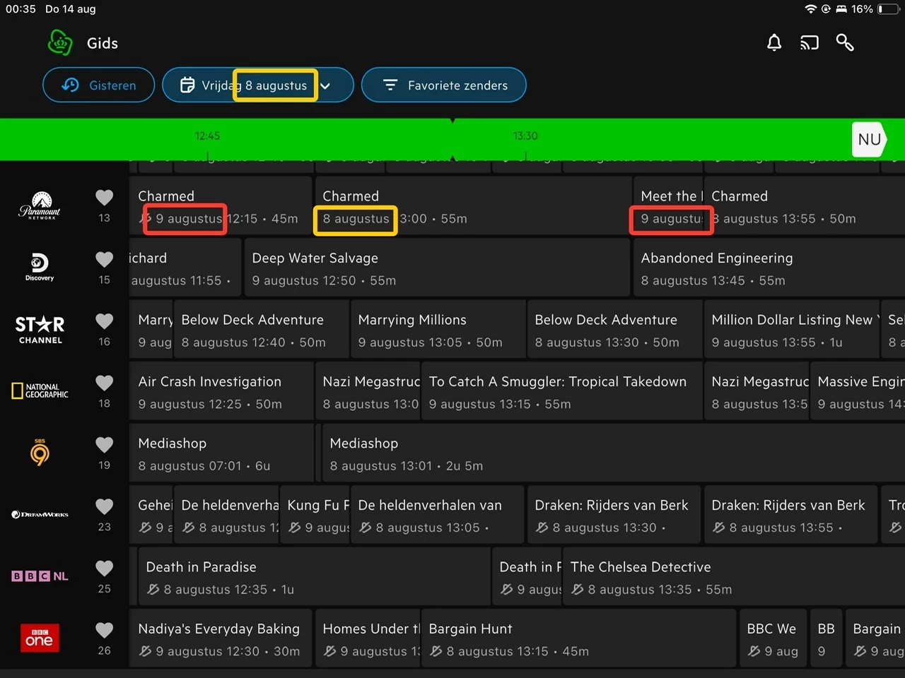 Helaas gaat het nog op iPadOS steeds niet helemaal goed met gids update na 00:00 als de app al actief was en de gids al (deels?) geladen vòòr 00:00.