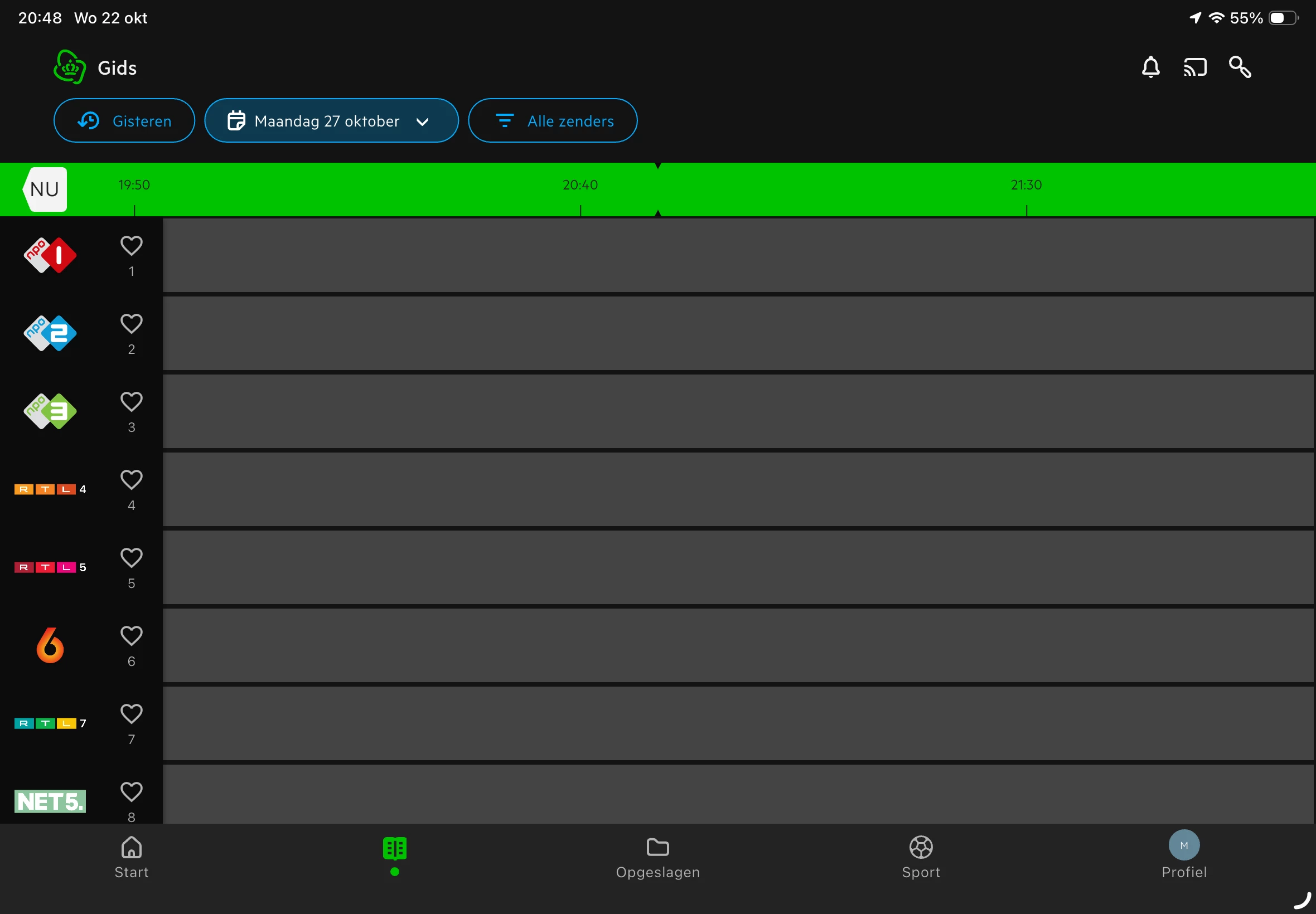 Kan het zijn dat de app op iphone en ipad (laatste versie) geen programma’s in de gids laat zien vanaf 27 oktober?