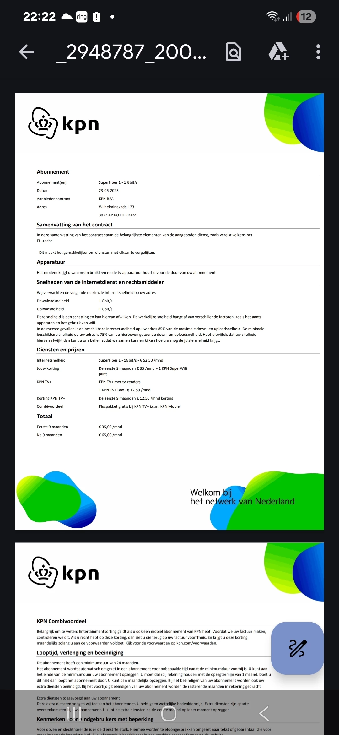 Helaas kennelijk dus niet. Wat jij hebt, is een afschrift van wat je van de deurverkoper hebt gekregen. Uiteindelijk krijg je vanuit KPN het definitieve contract en dat is het. Ik kan er niets mooiers van maken.