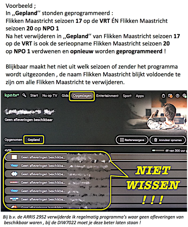 PS.  Het blijft wel heel apart dat er alleen naar de naam van het programma gehandeld wordt voor het verwijderen en niet naar de zender , serie/jaartal en/of aflevering !