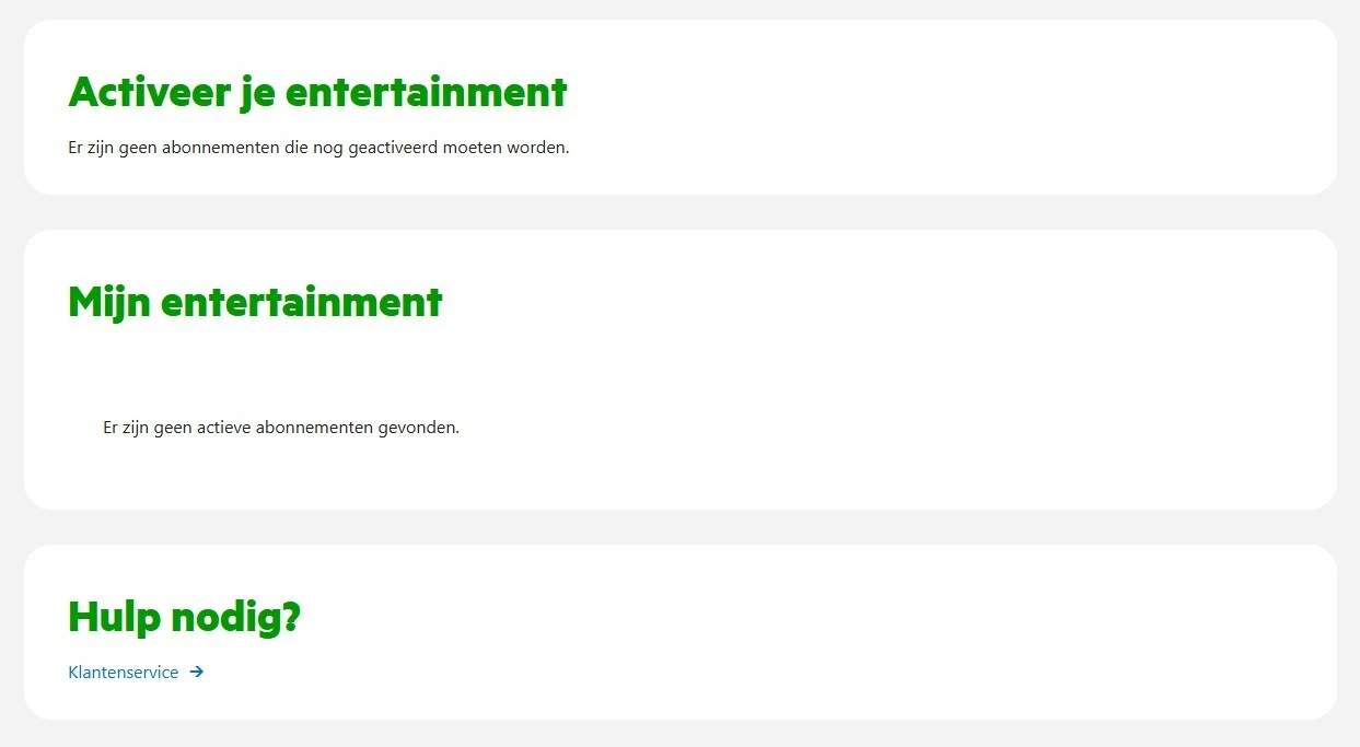 Via beide links kom ik op de pagina terecht waarvan ik hierboven een afbeelding heb staan. Geen te activeren of actieve entertainment abonnementen.