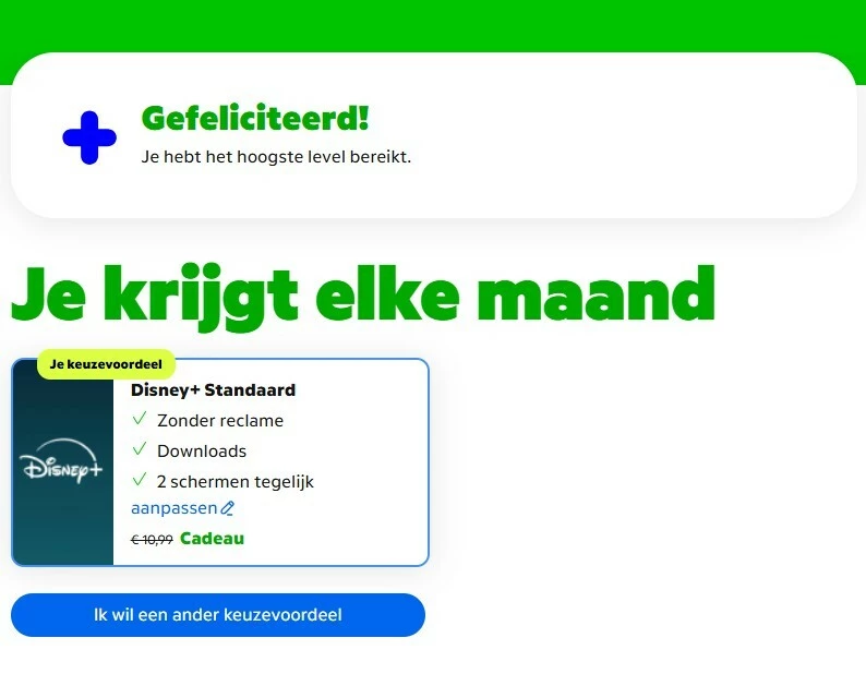 @Fonzer, ik heb inmiddels terugkoppeling gekregen dat Disney+ nu daadwerkelijk is geactiveerd als keuzevoordeel.