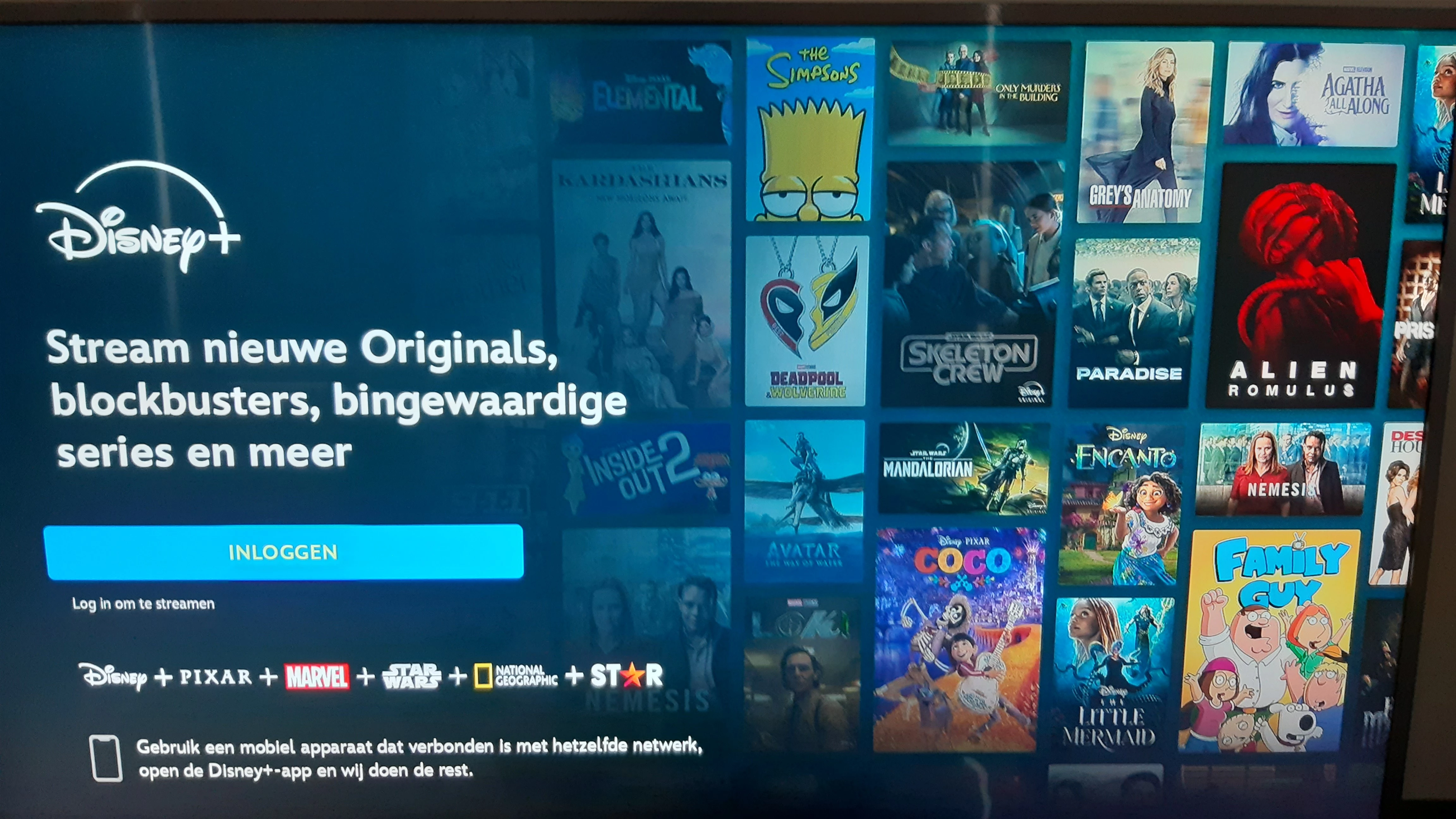 Welke ontvanger heb je van kpn? Bij mijn DIW7022 staat er gewoon '’inloggen'’ op het start scherm van de Disney+ app.