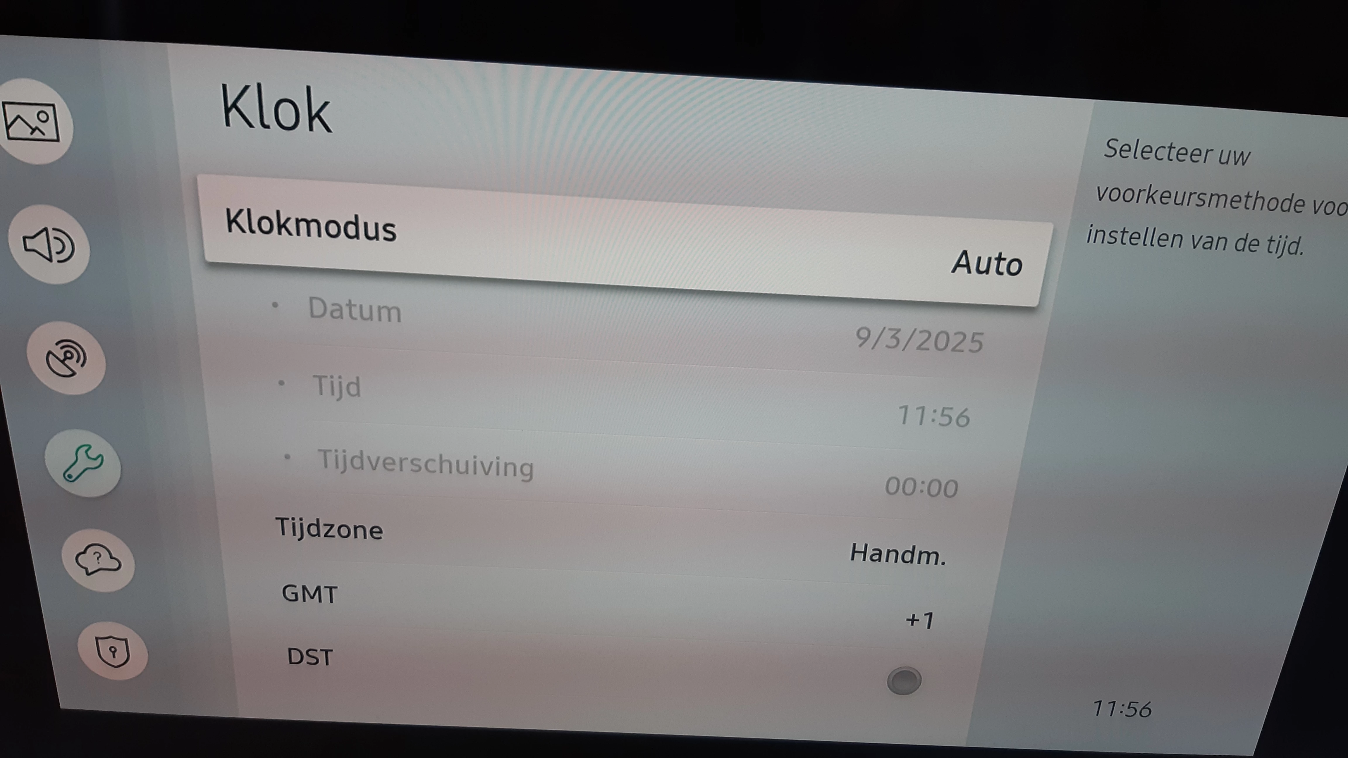 Soms merk ik dat de tijd van de tv zelf ook niet helemaal klopt wanneer deze op automatische modus staat, vandaar dat ik hem op handmatig ingestelde tijd houdt. Wellicht dat de iTV alsnog de ‘automatische tijd’ door krijgt vanuit Samsung OS?