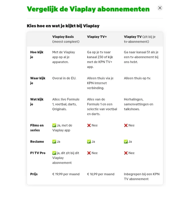 Viaplay TV is een kanaal wat Viaplay gratis beschikbaar stelt. KPN geeft het alleen maar door. Net als dat andere providers dat doen. En Viaplay is natuurlijk niet zo stom dat ze daarop alle races uitzenden.
