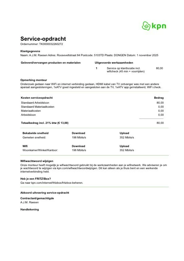 Met betrekking tot die 80 euro.  Als het goed is, is er een werk bon gepresenteerd waar je voor moest tekenen. Wat stond er op die bon?  Dan kunnen we daar samen even naar kijken.