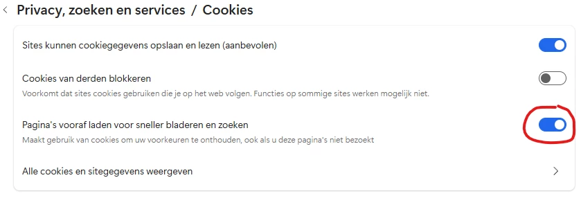 Ik heb zelf in Edge ingesteld dat cookies allemaal worden verwijderd als ik Edge afsluit.