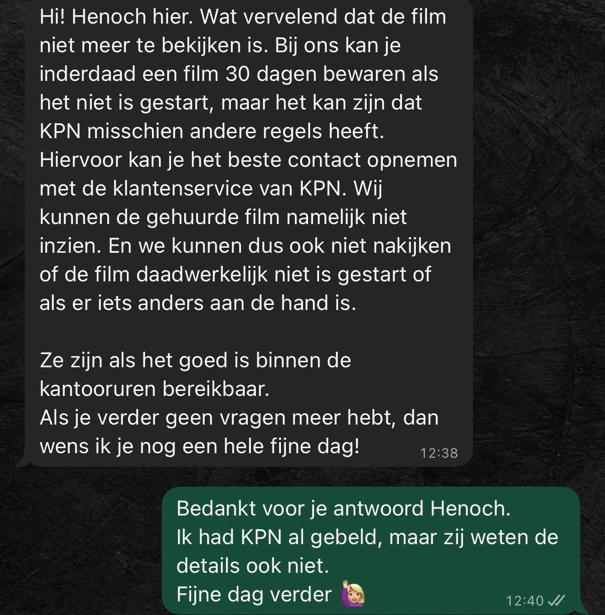 Ik had al eerder KPN gesproken. Een ontzettend vriendelijke meneer die ruim 15 min heeft gezocht naar het juiste voorwaarden voor deze actie. Die waren helaas niet te vinden.