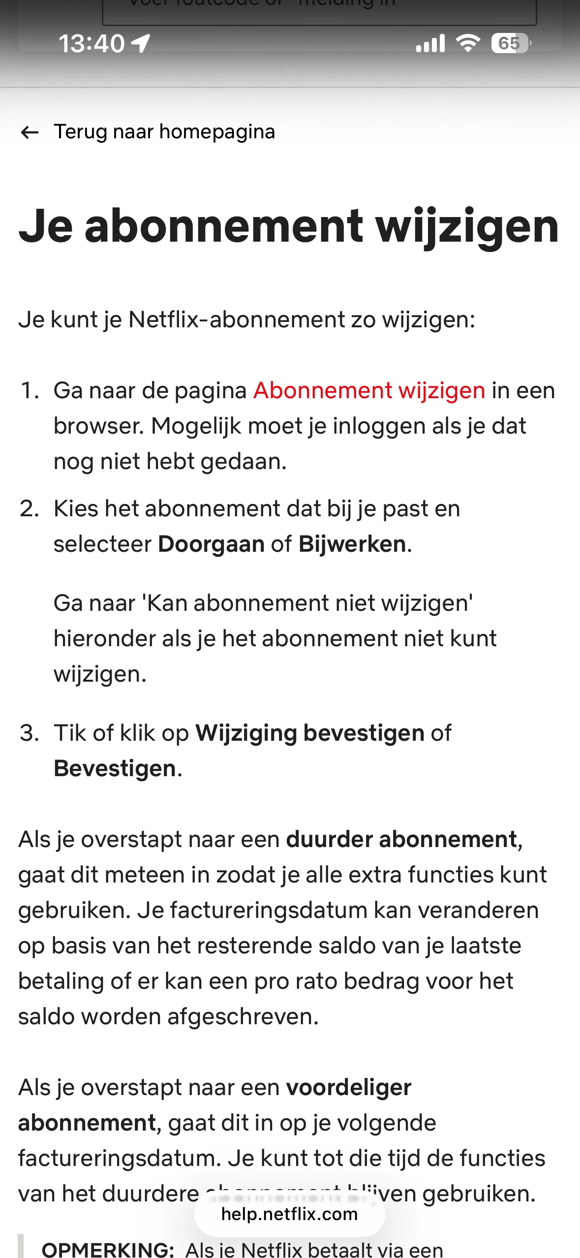 Waarom kan ik nog niet direct upgraden van Netflix Basic naar Premium?