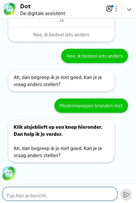 Het is gewoon stuk, probeer het zelf maar. Welke knop moet ik hieronder klikken? En waarom probeert die nare chatbot je weer “te helpen” terwijl je al besloten hebt dat je een mens nodig hebt?