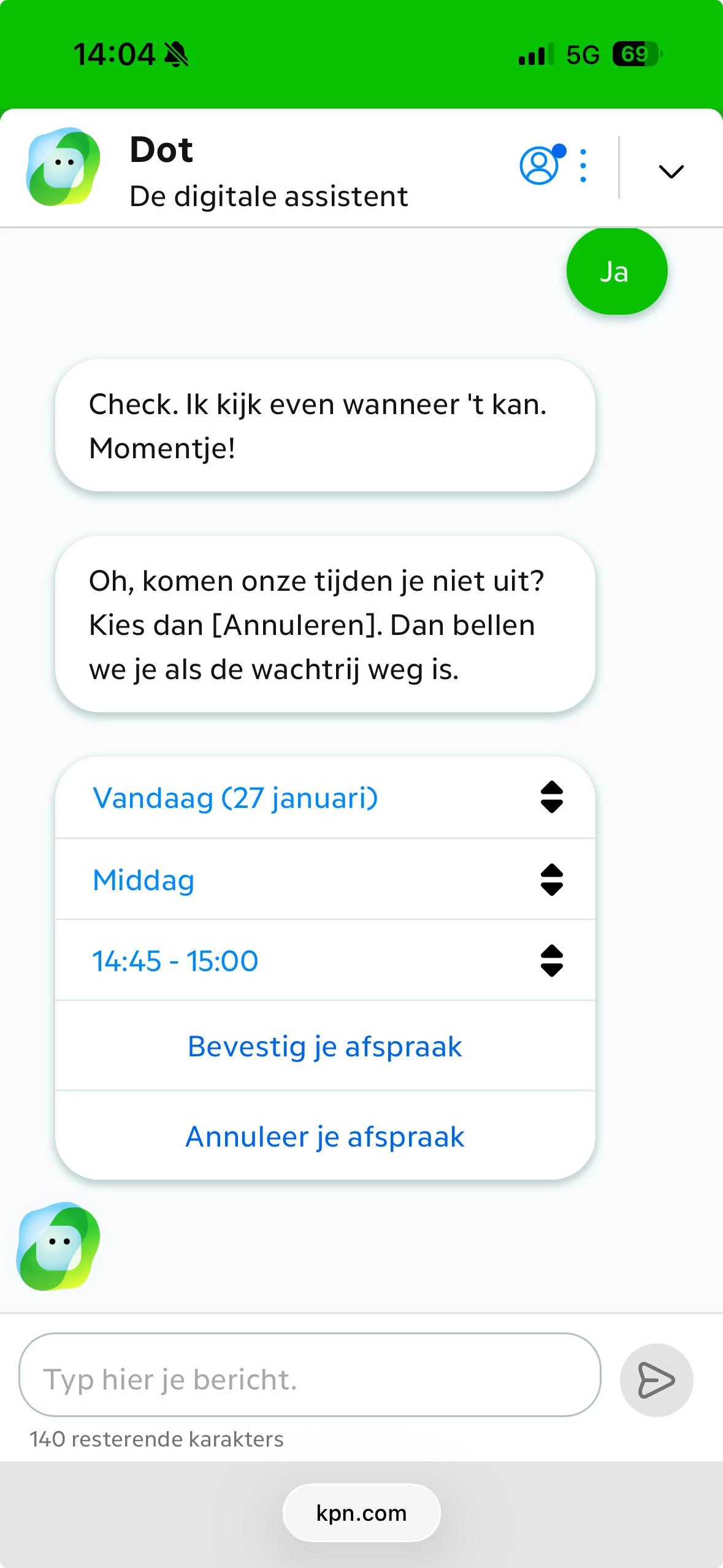 Goedemorgen ​@JRuitG, dankjewel voor je feedback. Jammer om te lezen dat je er ook voor de terugbelafspraak niet uit kwam: Dot zou je daar moeten helpen met plannen van een afspraak. We nemen het mee.
