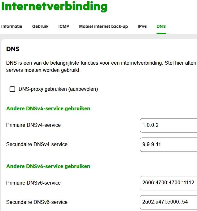 @Lights-On De KPN DNS servers onder IPv6 is een foutieve weergave, de alternatieve DNS servers worden wel gebruikt