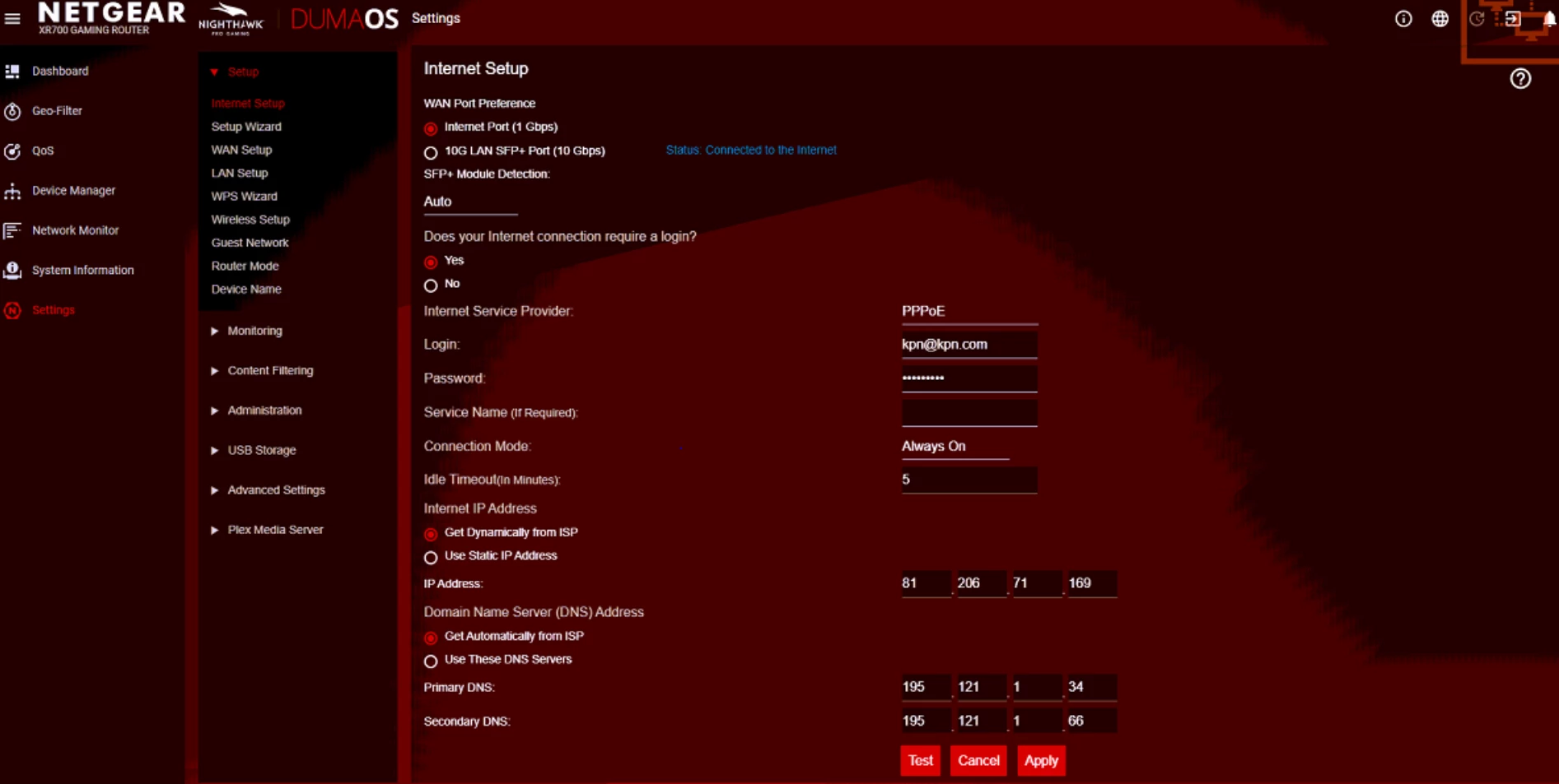 @wjb Ik heb navraag gedaan over de Netgear router, en deze is direct aangesloten geweest op de aansluiting en werkte met de standaard meegeleverde firmware. Mijn collega geeft aan dat dit toch gelukt is door de Vlan te activeren op een utp poort.