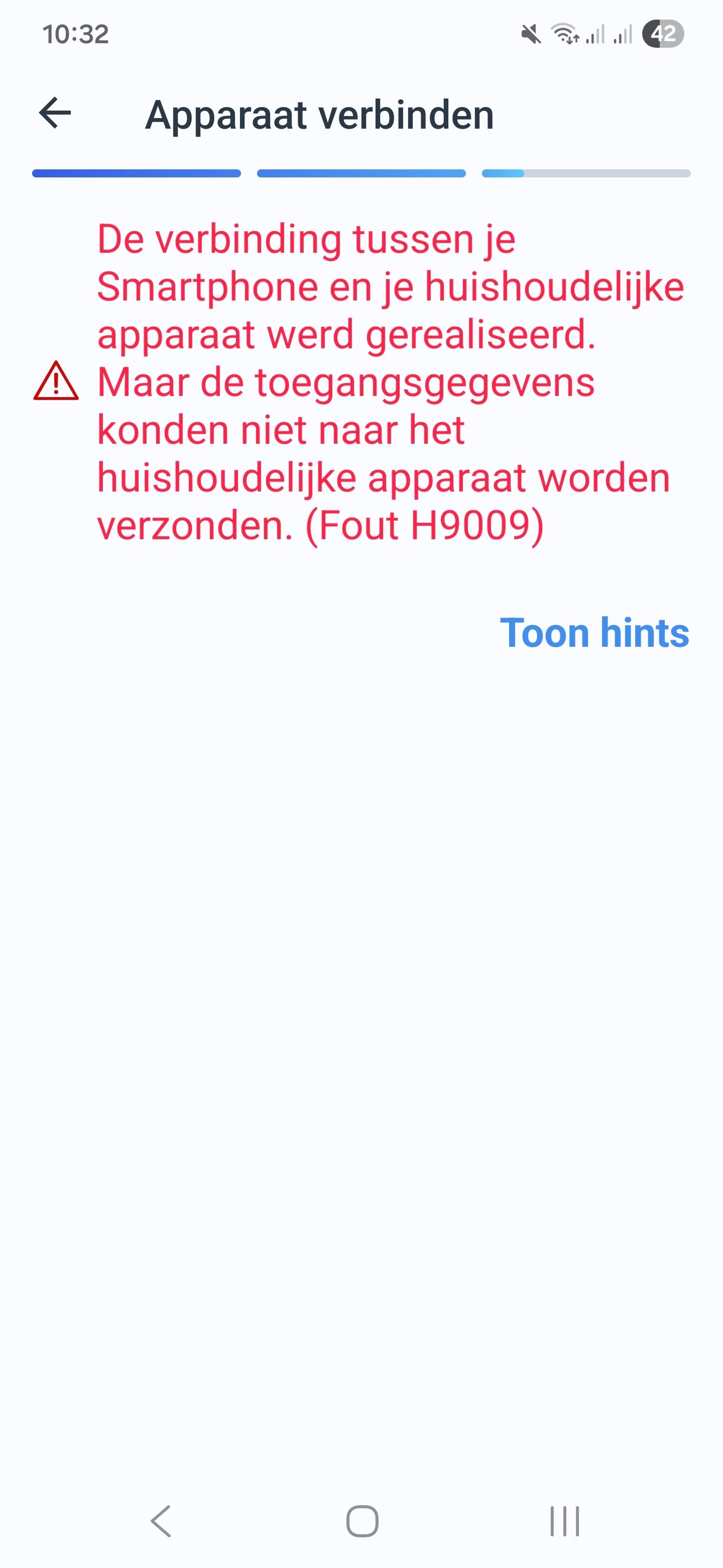 Heb nogmaals van alles geprobeerd, wasmachine afgekoppeld van het stroomnet. App opnieuw gedownload. Verbinding maken met hetzelfde wifi 2.4ghz netwerk niks werkt. Loopt elke keer vast bij de laatste stap in het proces.