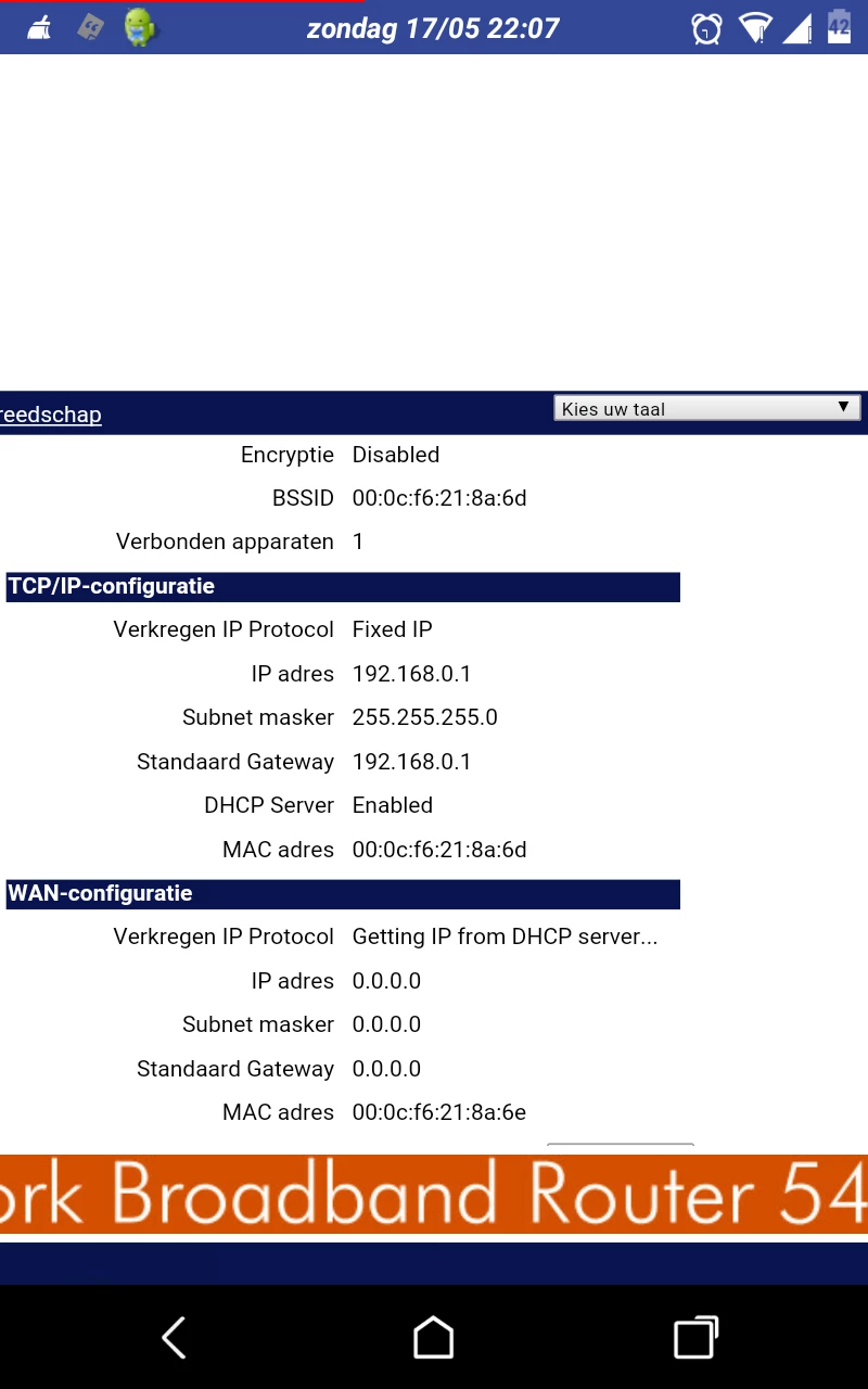 want heb nu namelijk wel een ip-adres van de router, maar geen internetverbinding.