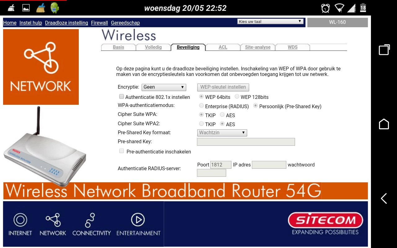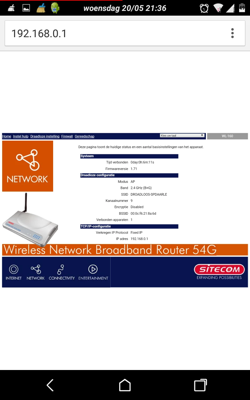 Ben ik dus nog wel benieuwd naar de WAN/Internet instellingen als de Sitecom thuis en op de vereniging verbonden is.