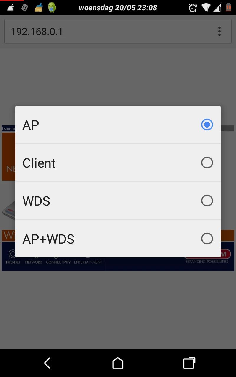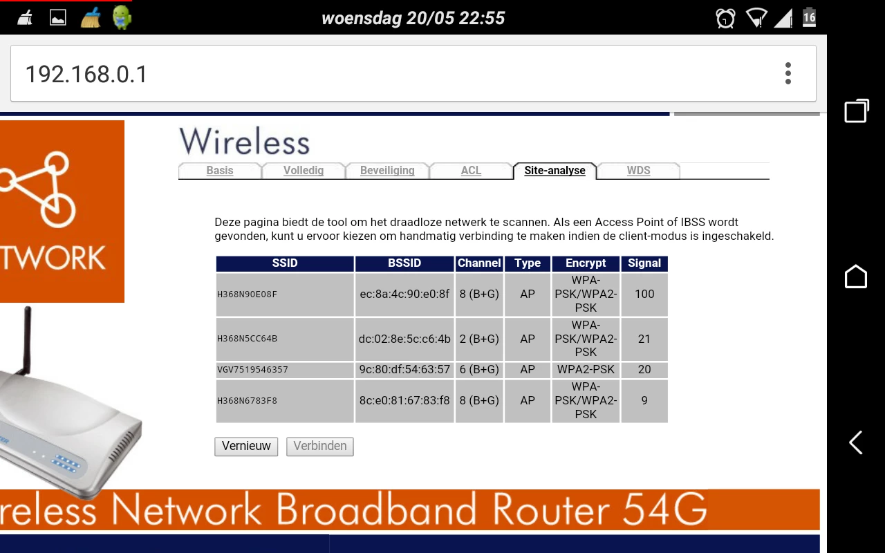 Vermeldt ook even welke mogelijkheden je hebt in de drop-down "Mode" op het Wireless Basic scherm.