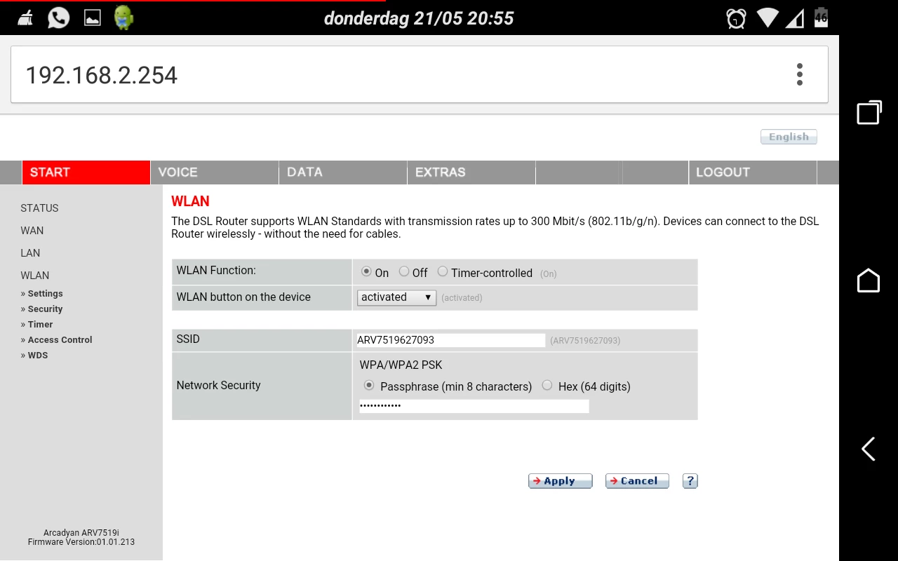 hierbij de gegevens zoals die van de Arcadyan die bij de voetbal staat afkomstig zijn.