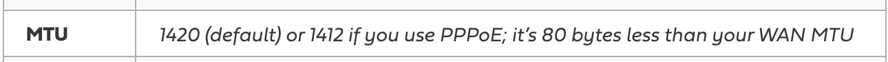 MTU wireguard server is standaard ingesteld op 1392, dus maximaal MTU is 1392