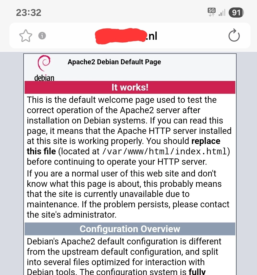 Op de mobiel op 5G mijn eigen domeinnaam die naar WAN ip verwijst: