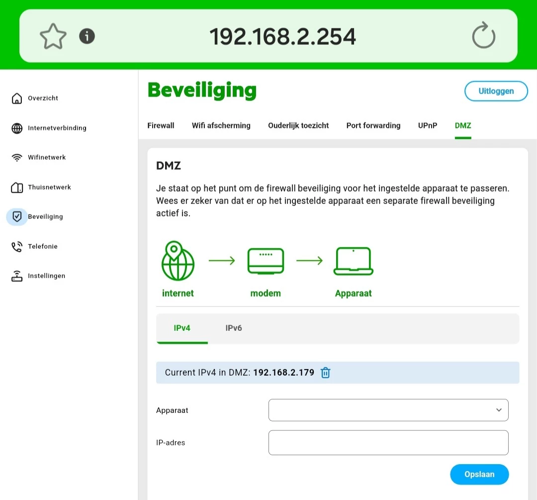 Alle inkomende verkeer van internet wordt automatisch naar DMZ geroutet.
