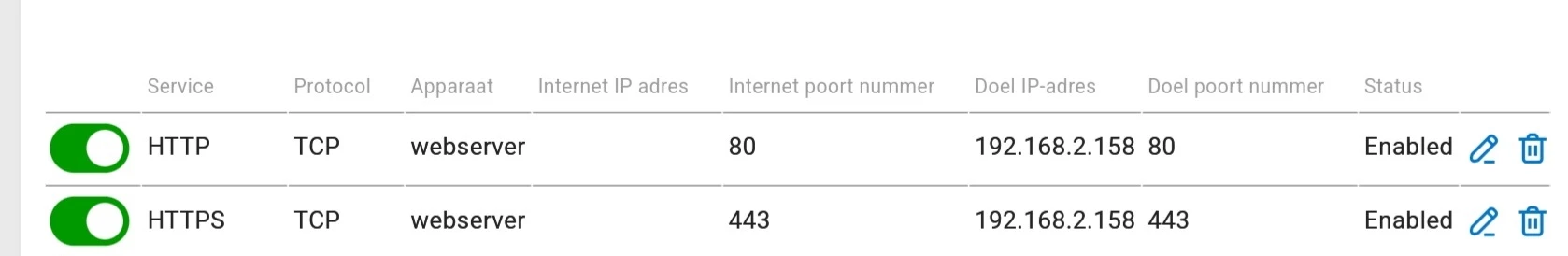Poortforwardings weer inschakelen en ik heb meteen de webserver weer.