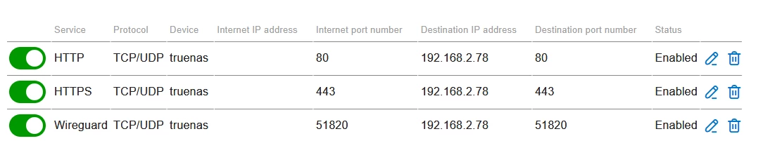 Om bij al deze applicaties te kunnen komen buiten mijn netwerk heb ik een aantal poorten op gezet zoals HTTP, HTTPS en een poort voor mijn wireguard. Ook draai ik een Nginx proxy manager die met LetsEncrypt sleutels een veilige verbinding legt naar mijn home server.
