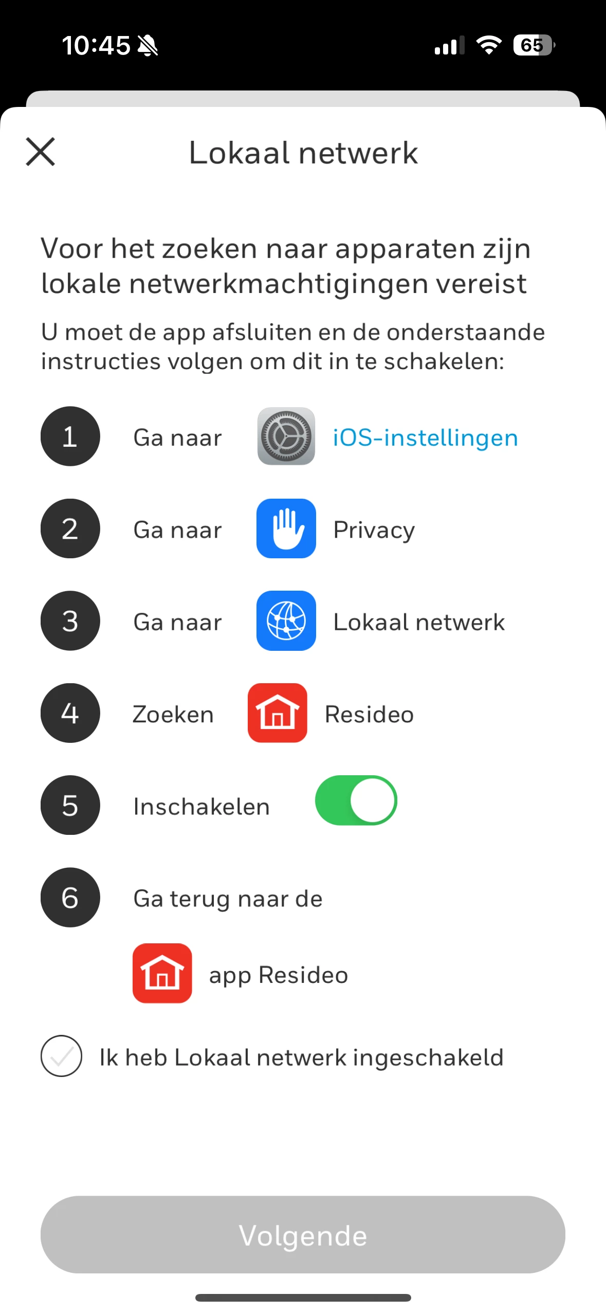 Hij blijft herhalen kan geen internet verbinding maken, kortdurend heeft die wifi en valt dan weer uit. De resideo Honeywell home app kent het lokale netwerk niet en doet het helemaal niet.