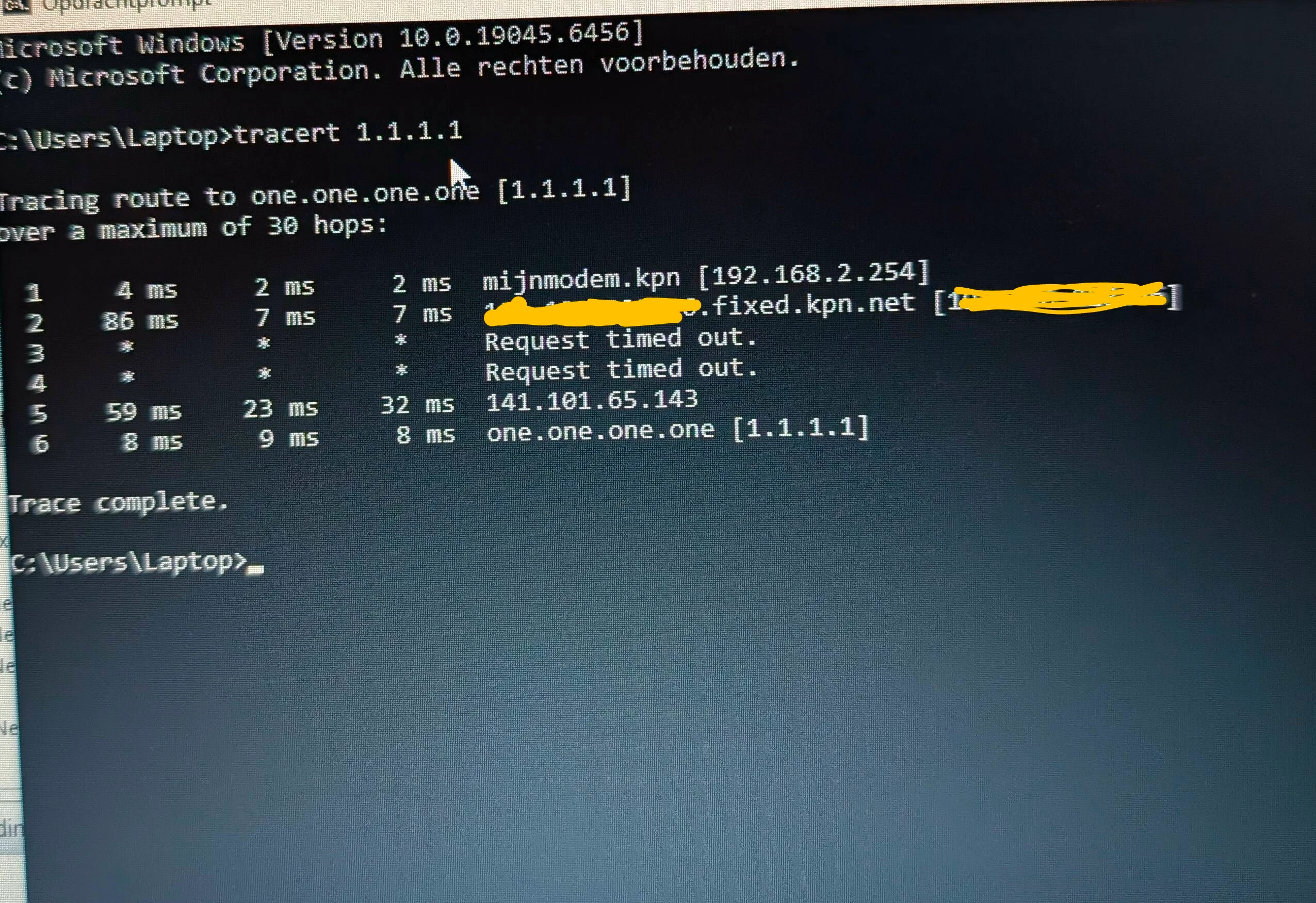 Maar het belangrijkste: een tracert naar 1.1.1.1 tijdens een lag-piek wijst op zware congestie in jullie netwerk. De pingtijden bij Hop 6 gingen alle kanten op 86 ms naar 23 ms en weer terug. Dat ziet eruit als een instabiele routering of dikke drukte bij de overdracht naar andere providers/carriers.
