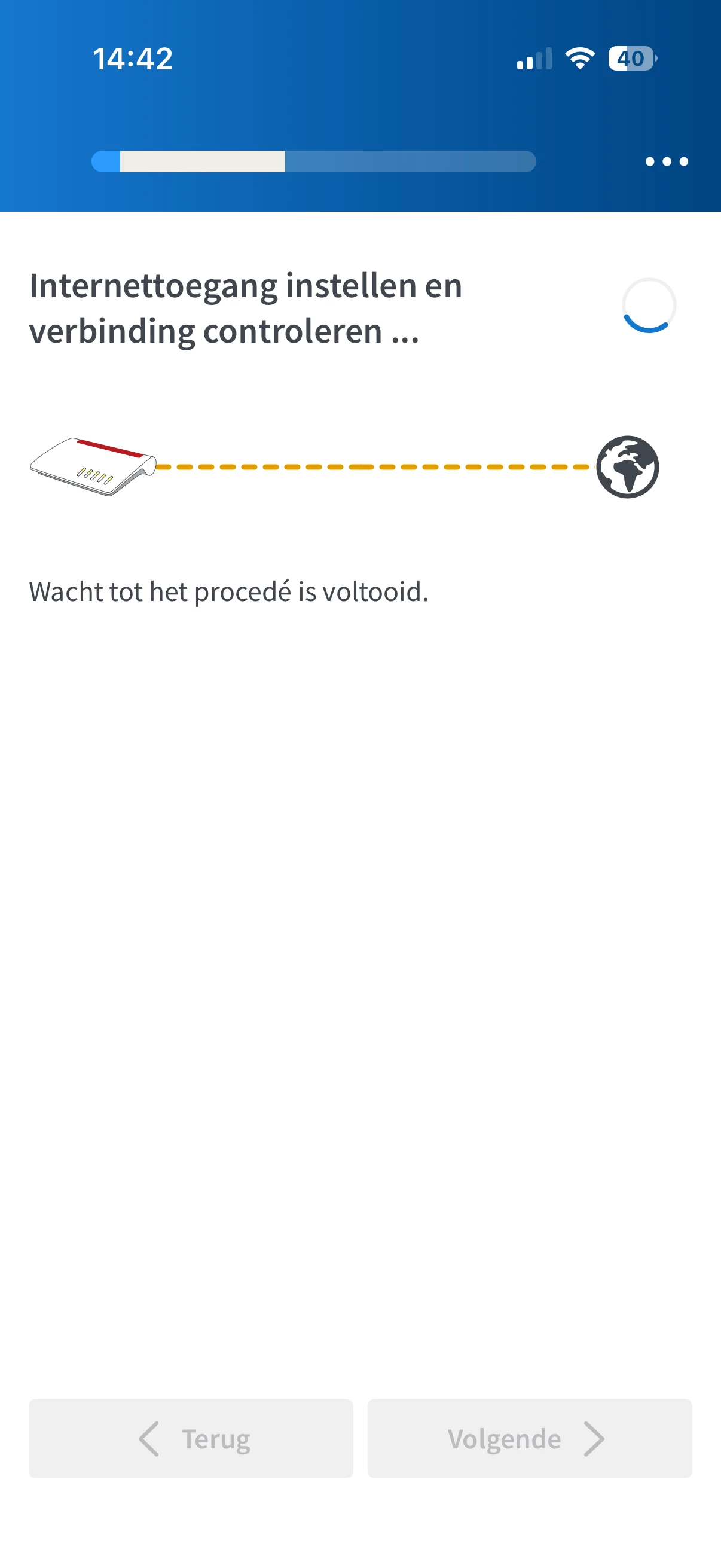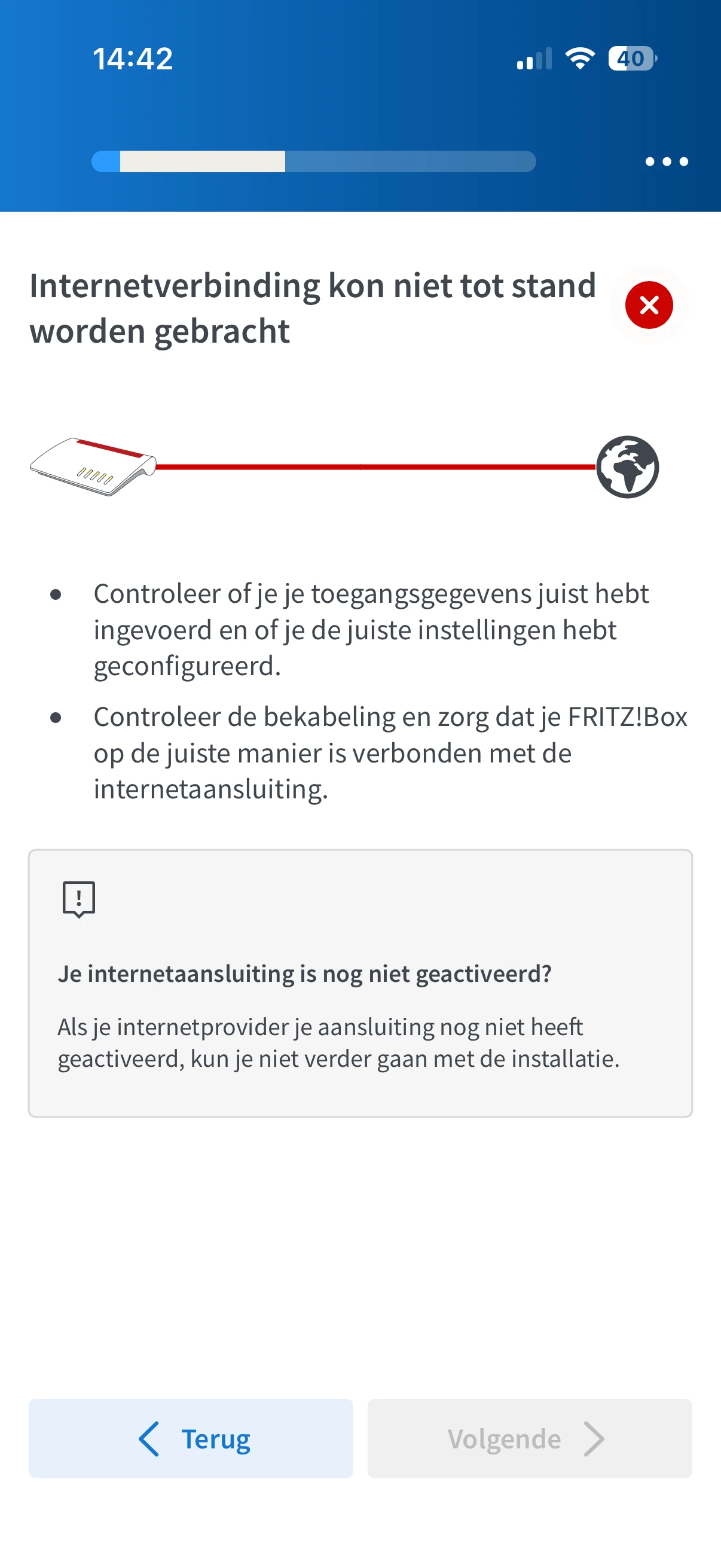 Zie foto’s ik kom niet verder doorloop netjes de wizzart maar vul ik in kpn glasvezel en gaat die internet controle en krijg ik dit geen internet