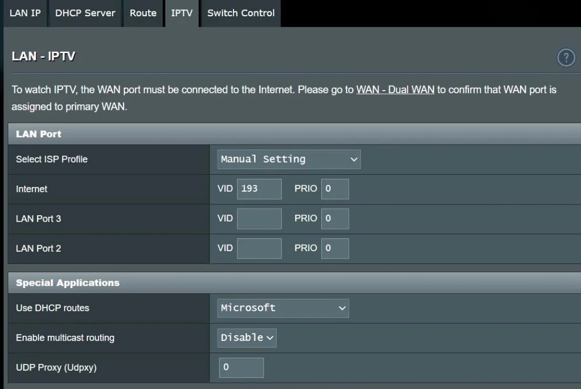 Mogelijk ben je beperkt in deze setting. Oplossing is switch en poort naar Asus tagged vlan6 geven