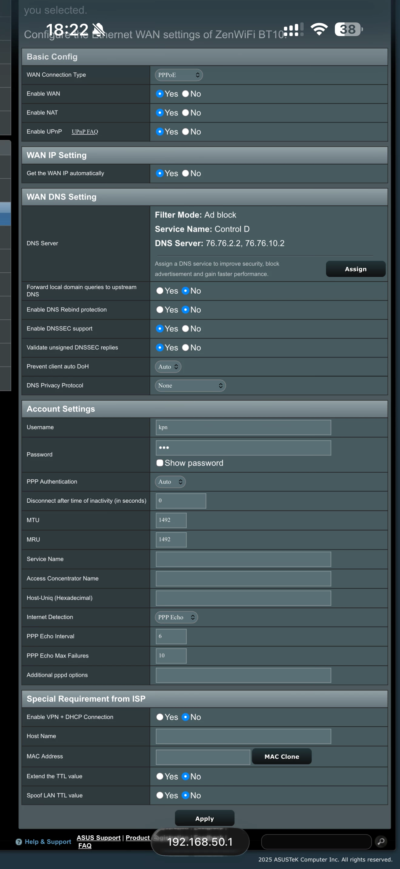 Ik heb een Asus BT10 gekocht voor gebruik als Mesh netwerk maar ik krijg een foutmelding dat de DHCP van KPN niet werkt. De KPN Box (14) zit er niet tussen, de BT10 is direct verbonden met de glasvezelvox via Ethernet.
