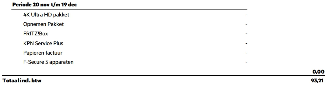 Okay duidelijk, ik betaal deze maand € 93,21 zonder extra diensten. De Fritzbox die ze hier bedoelen komt oorspronkelijk uit 2013 en hebben ze nooit vervangen, dat heb ik zelf maar gedaan.