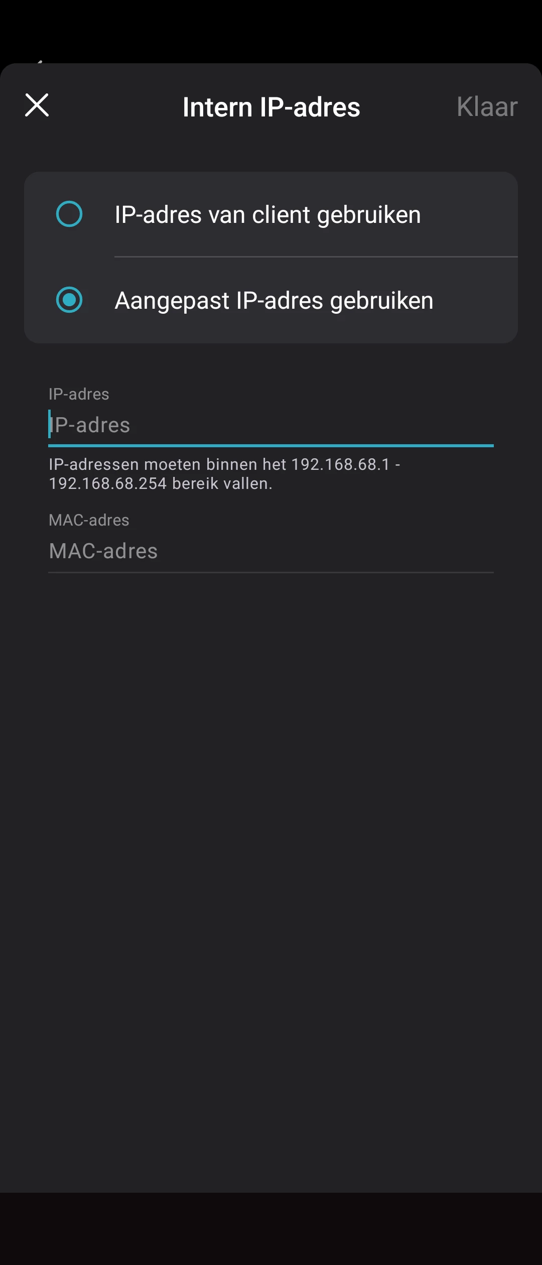In host het WAN IP-adres van de Hoofd-deco, dus 192.168.2.xxx