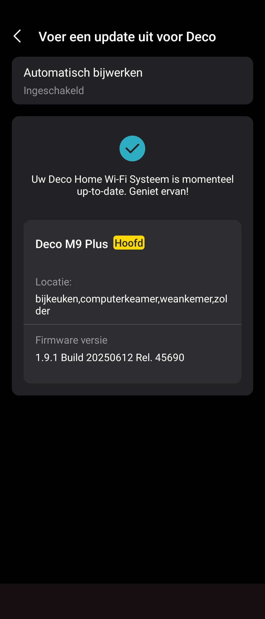 @Smytangel Kan je nou met de firmware 1.9.1 de portforwarding opslaan? Ik denk dat heeft te maken met verschillende firmware van Deco's. Vooral de hoofd-deco moet de slave-deco kunnen managen, en met een oudere firmware dan slaves gaat het waarschijnlijk niet wegen incompatibiliteit.