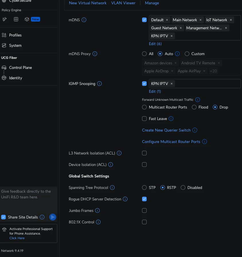 KPN TV Multicast instellen op Unifi Cloud Gateway Fiber lukt niet