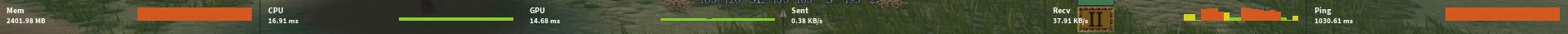 Stats van mijn verbinding/performance (CPU gebruik is ~15%, RAM ~12/16GB)