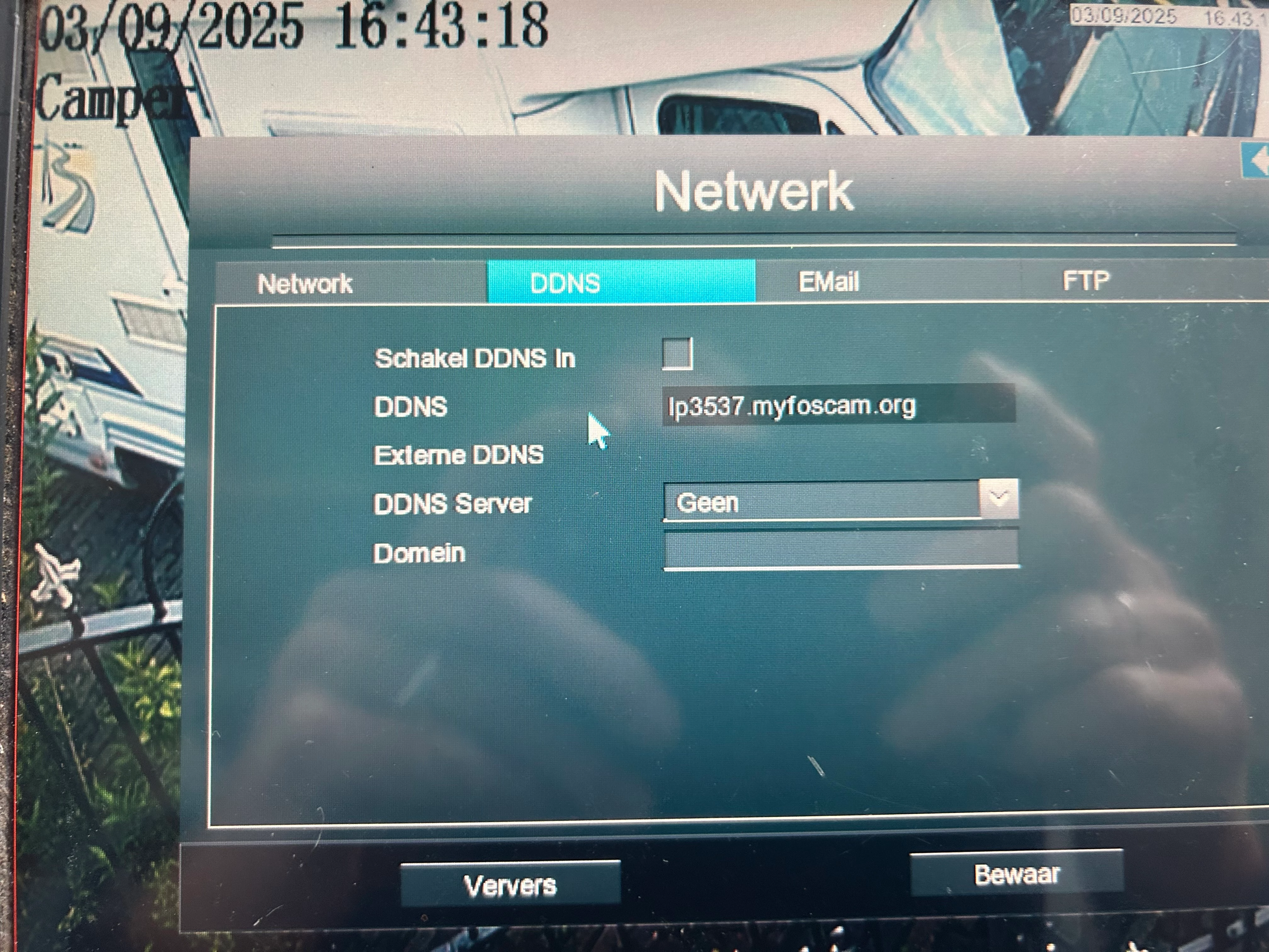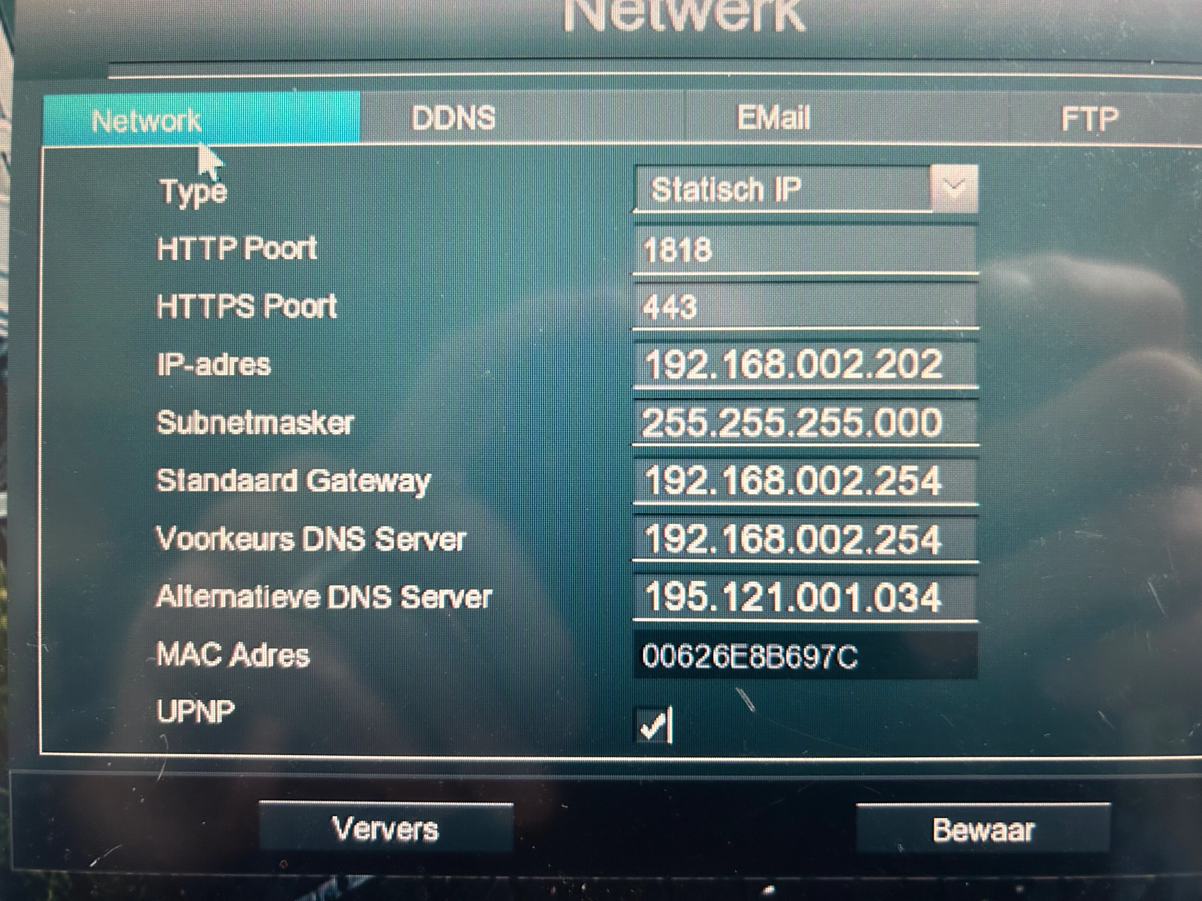 In de app heb je nu het interne IP adres staan van de NVR schrijf je, als je via 5G verbind zal je jouw publieke IP adres in de app moeten invullen.