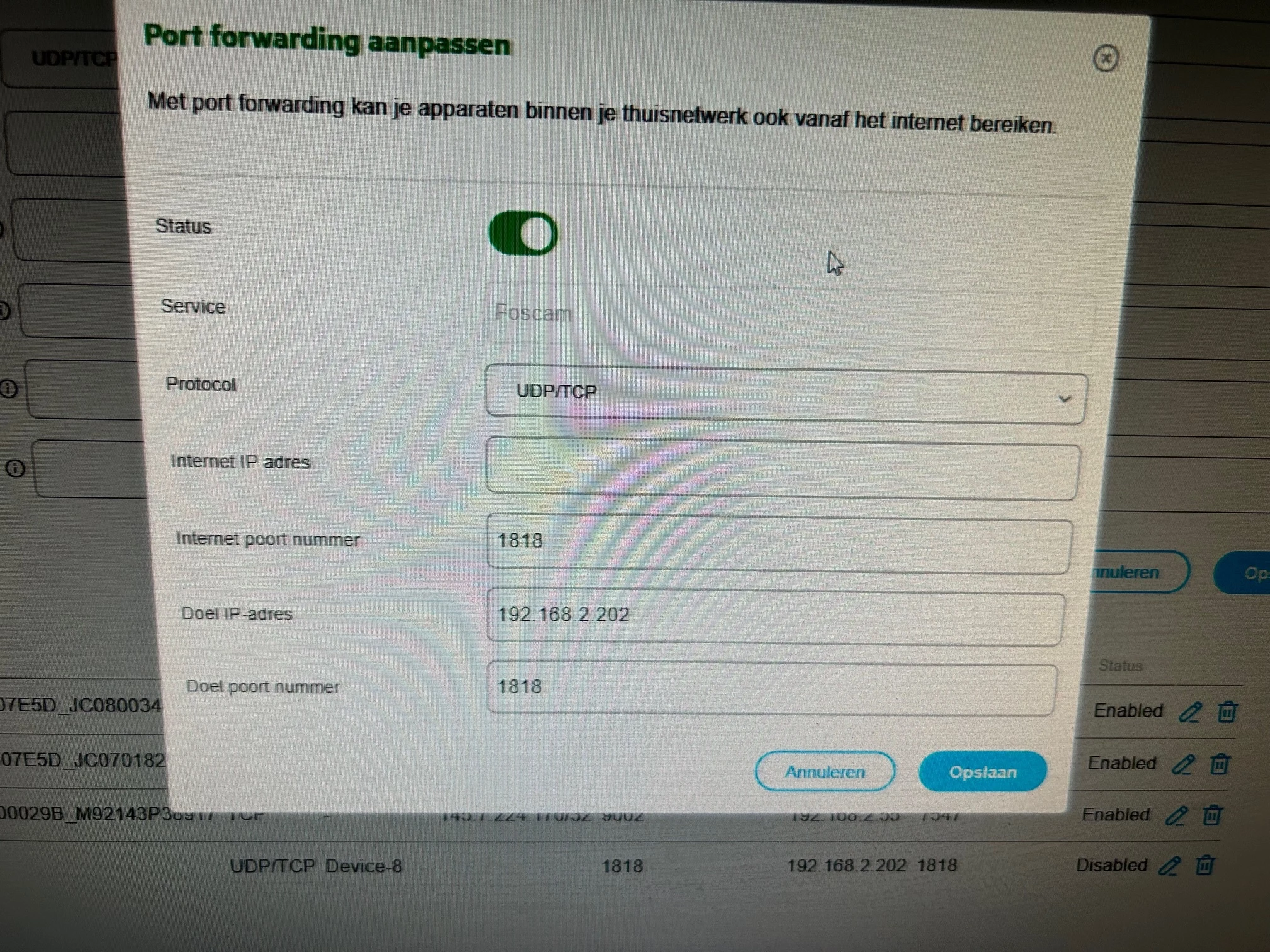 kan je een screenshot malen van de ip instellingen en je forwarding