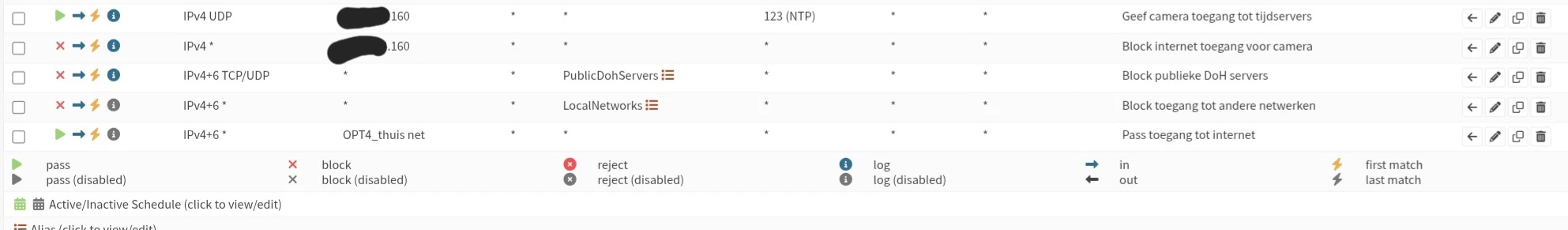 Wij hebben hier een TAPO camera hangen sinds kort. Deze hangt gewoon in het normale thuisnetwerk. Met een firewall regel hebben we toeging tot internet voor specifiek dit apparaat geblokkeerd. Dit doen we op een Opnsense router.