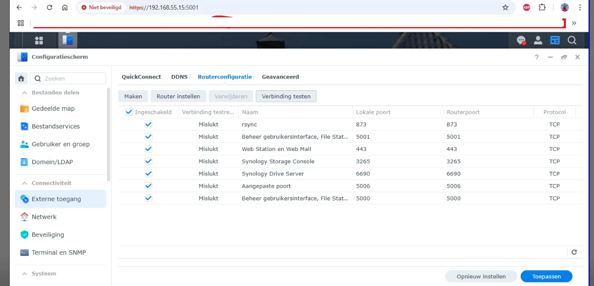 Ik heb synology nas firewall uitgezet en nog gaat portforwarding niet goed