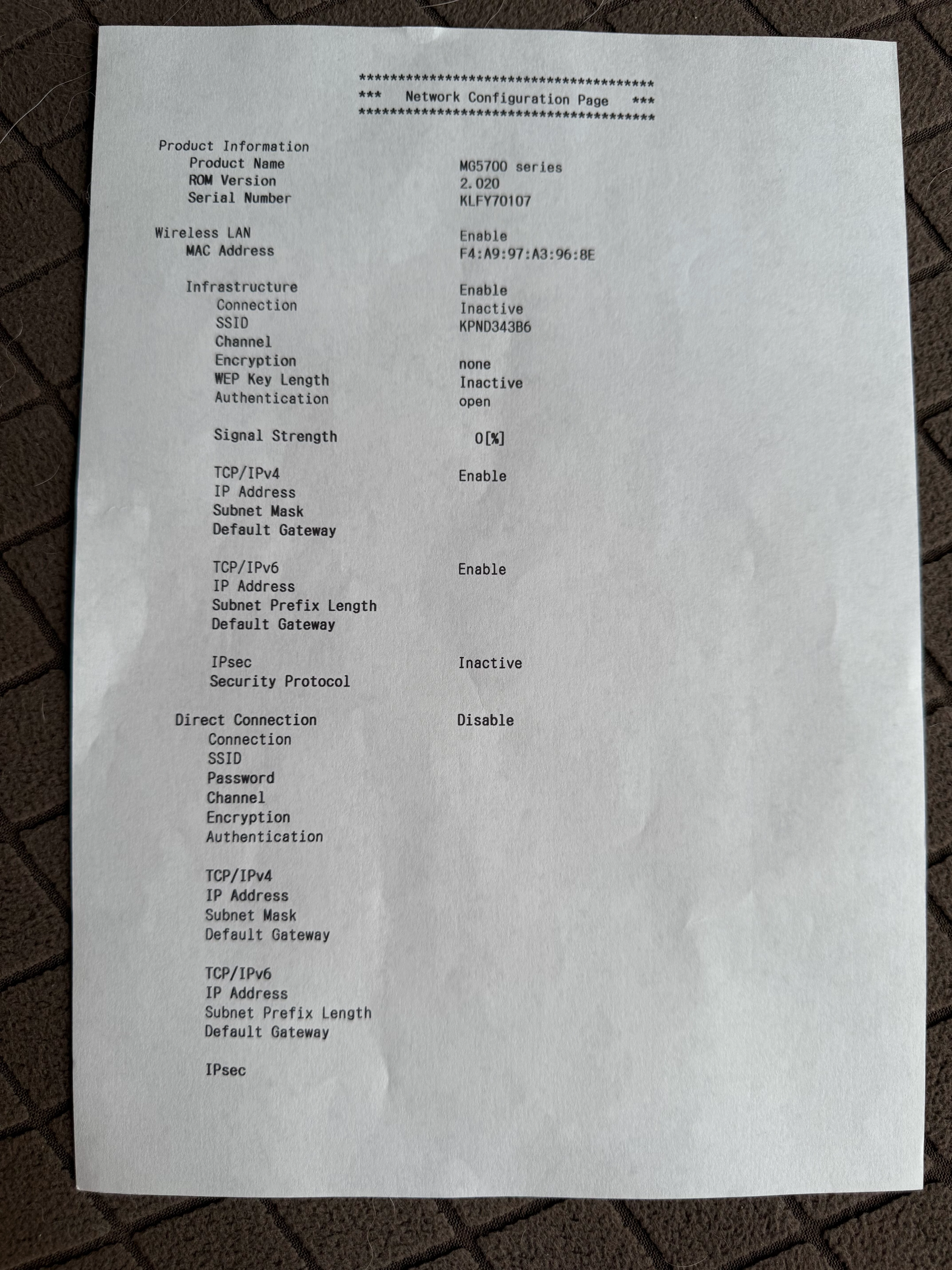Het probleem is opgelost. Ik heb wat gelezen over mijn oude printer. Hij maakt geen verbinding omdat hij niet werkt met de LAN- en RJ45-interfaces. Vandaag heb ik een nieuwe printer gekocht met een nieuwere aansluiting, zoals je hierboven al noemde: mWiFi in A/N/AC of B/G/N. De nieuwe printer werkt en maakte zonder problemen verbinding. Bedankt allemaal voor jullie hulp en het geven van wat advies